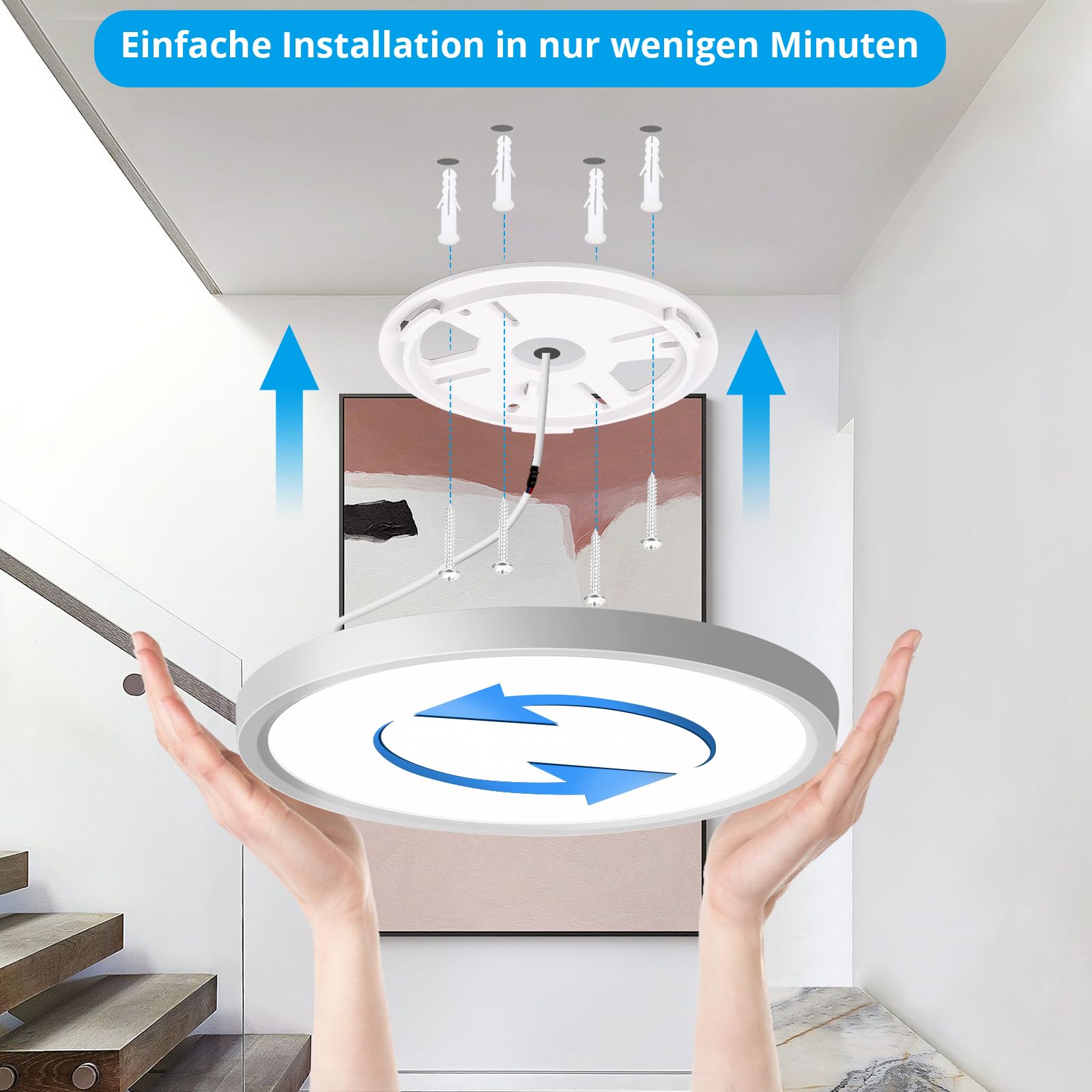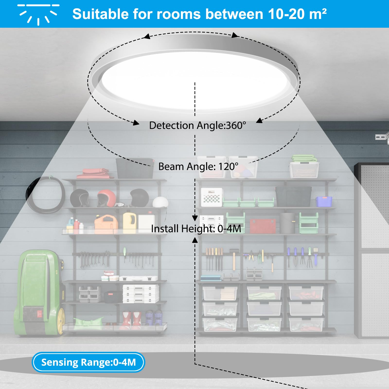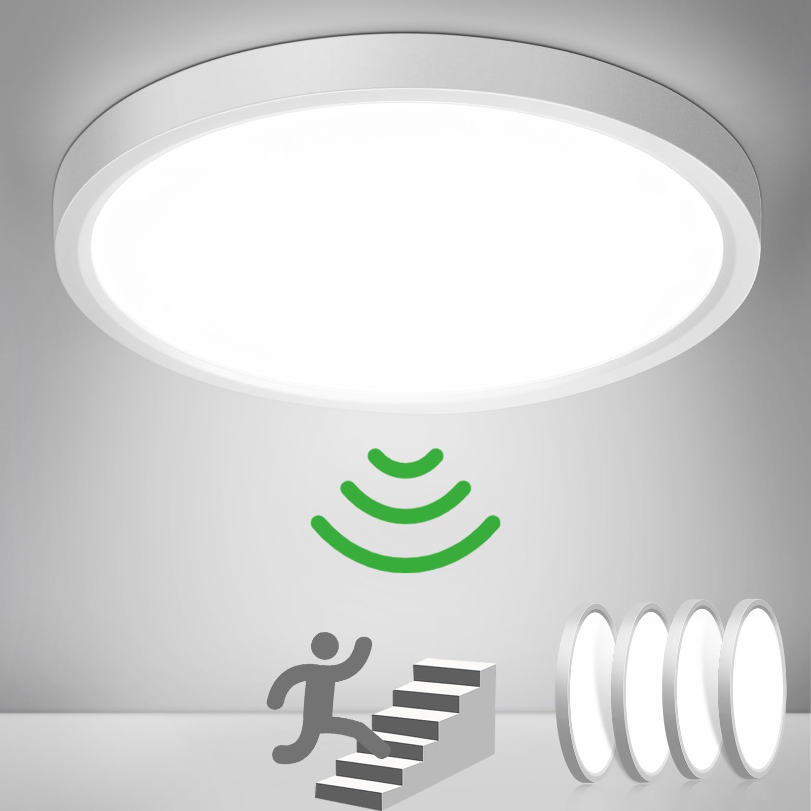 ["ππ»ββοΈππ»ββοΈ INDOOR MOTION SENSOR: The lamp is equipped with radar detection, sensitive without delay, not affected by ambient temperature, better than infrared sensors. The lamp with internal motion sensor is activated when motion is detected within 20 feet. If no motion is detected, the lamp will automatically turn off after 60 seconds. Tip: Since the highly sensitive radar can penetrate walls and doors, it should not be installed near doors.","π π SUPER BRIGHT YET ENERGY SAVING: The ceiling light with motion sensor and built-in LED is bright and energy-efficient. The 4000K natural white light is evenly illuminated, flicker-free, and eye-friendly. The brightness of 18W is roughly equivalent to that of a previous 100W incandescent bulb. This results in energy savings of up to 85% more than traditional bulbs. And the motion sensor ceiling light has an even longer lifespan of 30,000 hours, lasting over six years.","π π HIGH-QUALITY ABS MATERIAL: The housing of the ceiling light is made of high-quality ABS, which is shockproof, dissipates heat well, and does not yellow. The one-piece design prevents the entry of mosquitoes, moisture, and dust. IP44 lamp is suitable for hallways, stairs, porches, garages, carports, balconies, storage rooms, basements, etc. And the ceiling light is CE/ROHS certified, please feel free to use it.","βͺ βͺ 2.4CM ULTRA-THIN DESIGN: With a thickness of only 0.94 inches, the motion sensor light looks slimmer and more elegant, fitting perfectly in your ceiling wall. The simple and modern design perfectly matches all styles of decor. And this lamp is suitable for a room of 10-20 square meters.","π οΈπ οΈ EASY INSTALLATION: The ceiling light comes with detailed assembly instructions and is very easy to install."]
