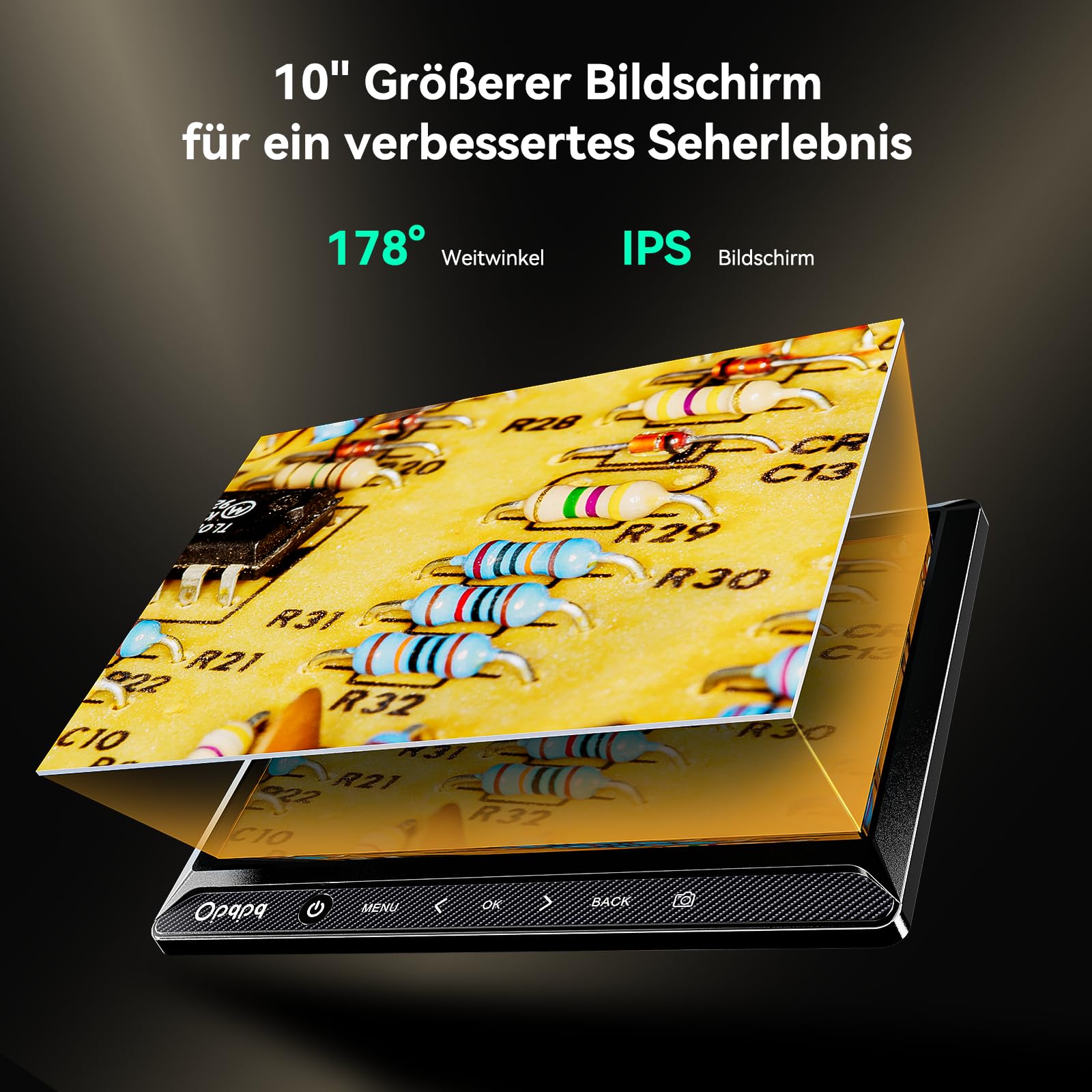 "10-inch widescreen: The crystal clear IPS screen of the microscope displays circuit boards and coins without delay, facilitating real-time display and discussions with others; Ideal for sharing results"