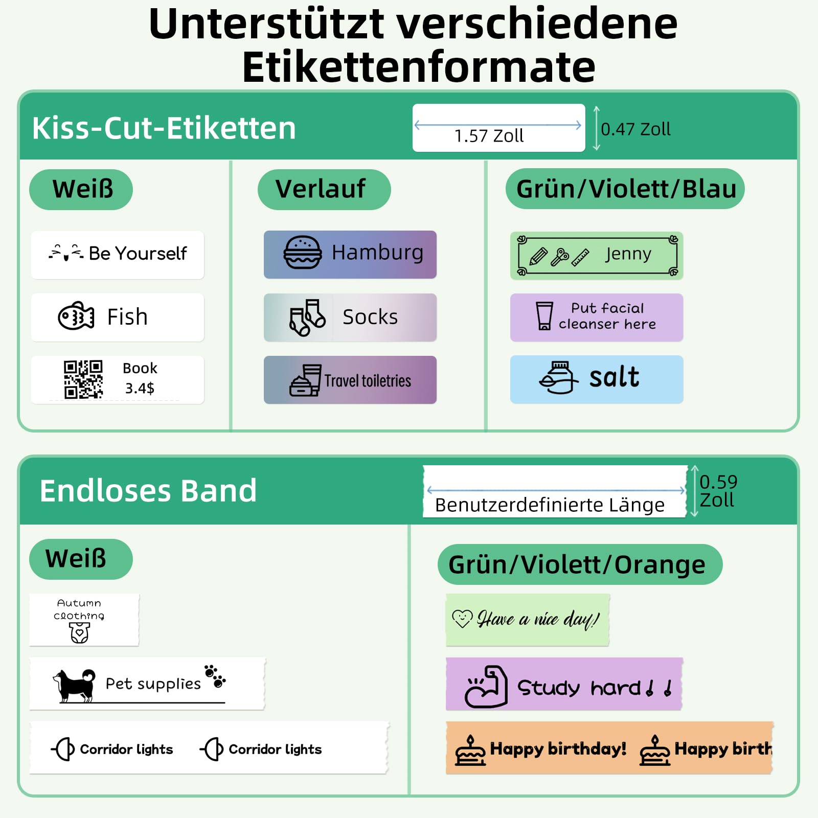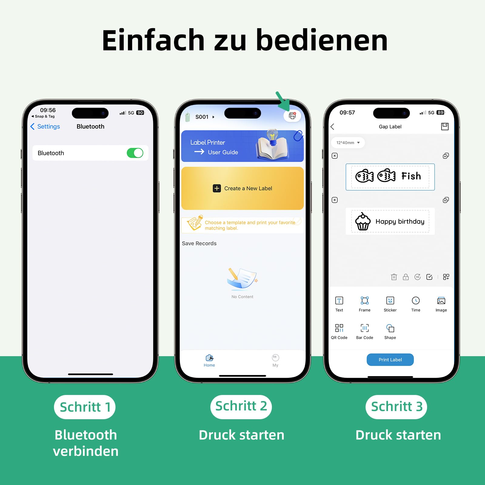 Extensive design options — Over 190 templates and 300+ symbols for custom labels. Print texts, tables, handwriting, barcodes, QR codes, timestamps, or text recognition directly from the app.