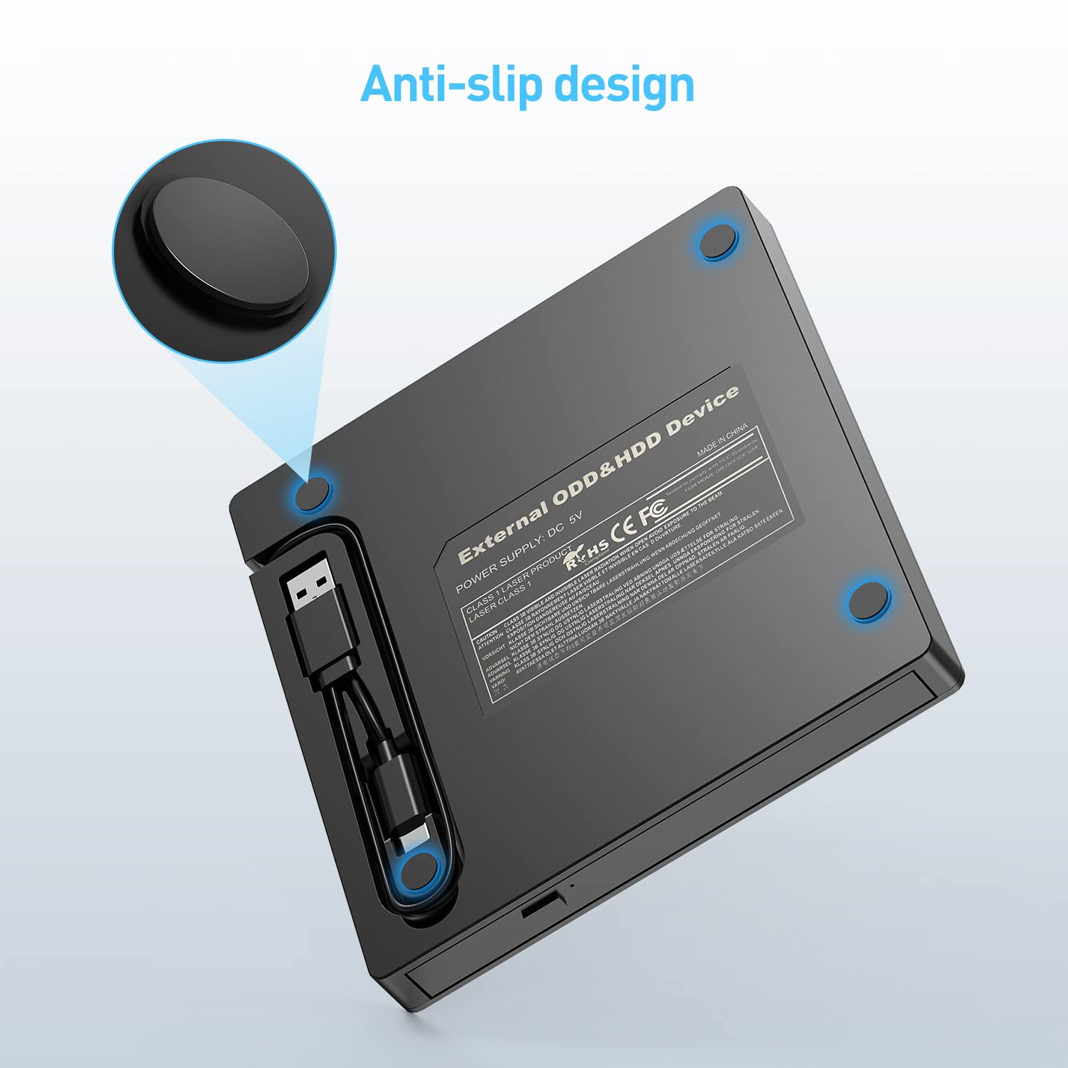["External CD Drive for Laptop - The lack of a built-in CD/DVD drive in your laptop prevents you from enjoying music and movies, backing up data, or installing software. The external DVD burner from ORIGBELIE is a good solution and does not require any additional drivers.","USB 3.0 HIGH-SPEED - External CD drive with high-speed USB 3.0 technology, and backwards compatible with USB 2.0/1.1. USB 3.0 is an upgraded version of USB 2.0, providing higher data transfer rates of up to 5 Gigabits/s (625 MB/s). It is about ten times faster than USB 2.0.","Wide Compatibility - The external optical drive supports reading and writing CD±R/RW, CD-ROM, DVD±R/RW, DVD-ROM, DVD-RAM, DVD+R DL, DVD-R DL, VCD and SVCD. In addition, this external CD drive USB supports various devices such as MacBook, iMac, notebook, desktop, and laptop, etc. It is compatible with Windows 11/10/8/7/XP, Vista 7/8, Linux, Mac OS10.6 or higher. Please note: Does not support cars, TVs, tablets, phones, projectors, Chrombook, surfaces, and Blu-ray.","Plug & Play - ORIGBELIE external CD & DVD drives are powered by USB connection, no additional drivers and power supply required! Simply connect the USB C data cable and the DVD drive will be recognized by the computer. Please note that the Mac OS computer will display the device icon only when the CD is successfully inserted and read.","8-in-1 USB Hub - The USB external CD drive can also be used as a USB hub, including 1 USB 3.0 port, 3 USB 2.0 ports, 1 TF slot, 1 SD card slot, and 1 USB-C connector. Note: SD port and TF port cannot be used simultaneously.","Ultra Slim and Portable - This CD burner is very slim and lightweight, and the integrated data cable is easy to use and organize. The non-slip rubber base prevents slipping on the desk, allowing you to easily carry it in your laptop bag for home, office, or wherever you go."]