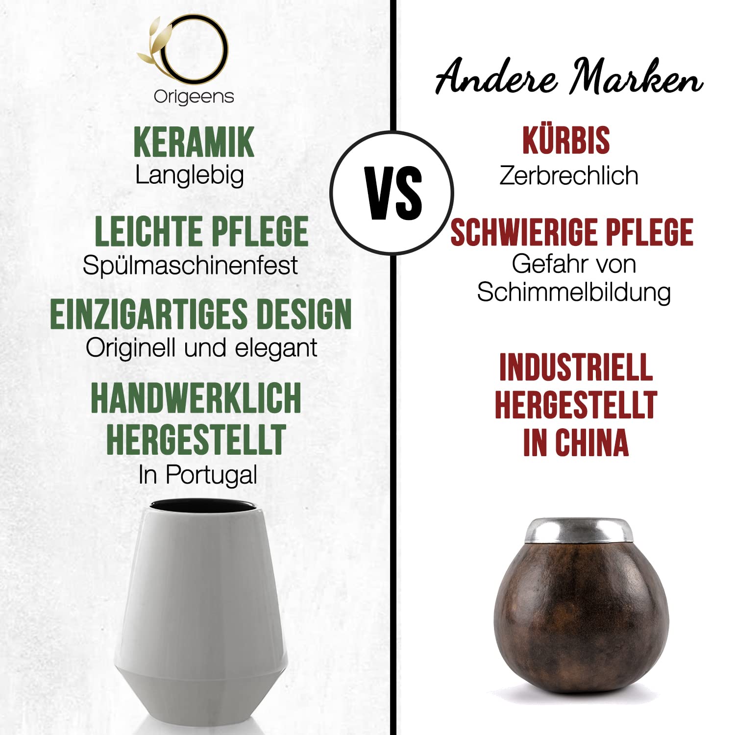 EASY CARE - Our Mate tea cup and the accompanying straw are easy to care for, they can be hand washed and are dishwasher safe: an elaborate cleaning, as with traditional calabashes that can mold, is therefore not necessary!","οΏ½ OUR RANGE OF ORGANIC MATE TEAS - The Wild One, The Original, The Fruity One, The Strengthening One, The Fresh One... Visit our shop and discover our different Mate teas with their typical characteristics!","ORIGEENS is a brand founded by 3 enthusiasts with responsibility, offering a selection of teas, herbal teas, and organic Mate teas. Our promise? To offer you unique moments and special taste experiences every day"]