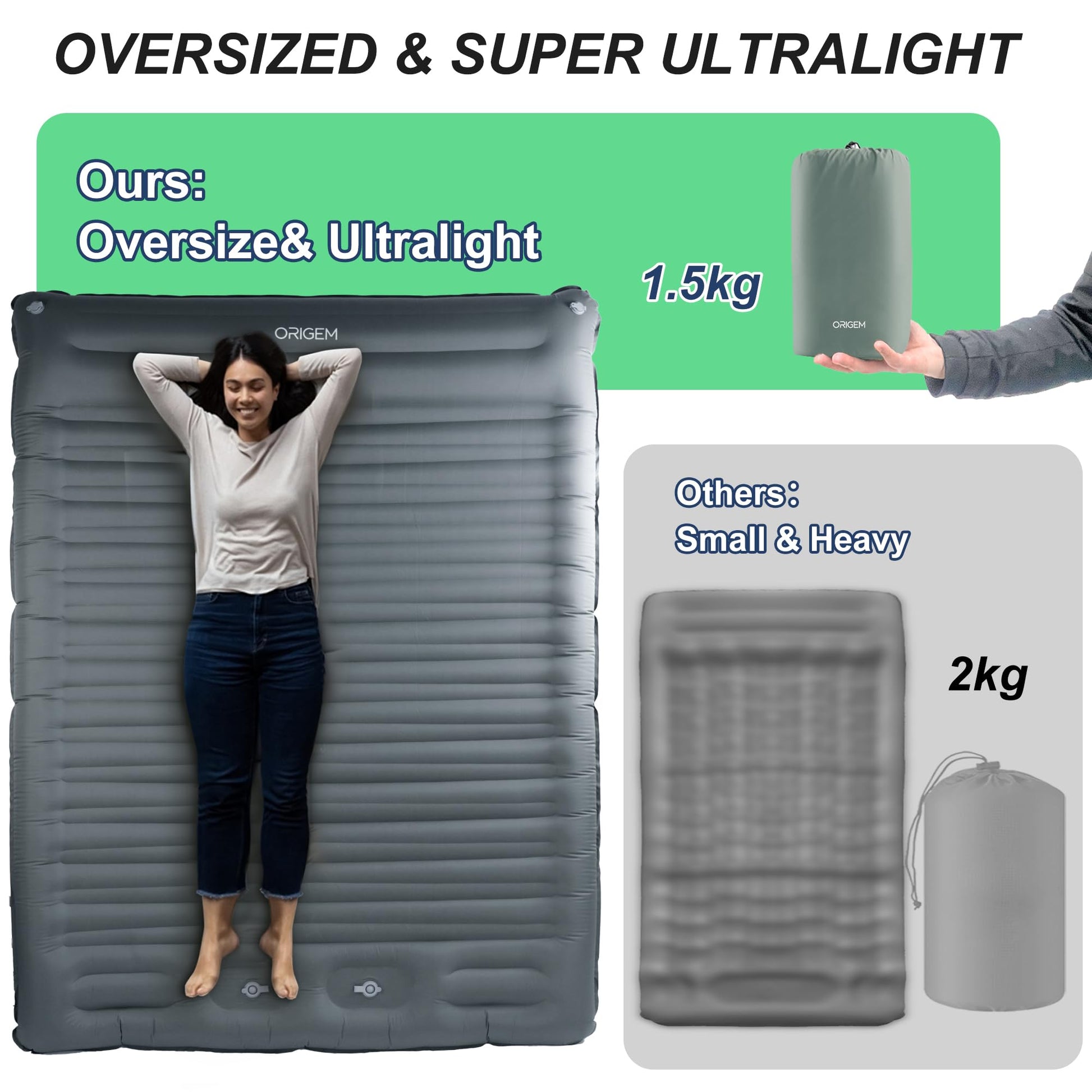 Origin Isomatte Self-Inflating 2 Person, 14CM Ultralight Air Mattress Camping Inflatable Small Pack Size with Foot Pump, Oversized Mattress for Tent, Backpacking, Hiking, and Camping