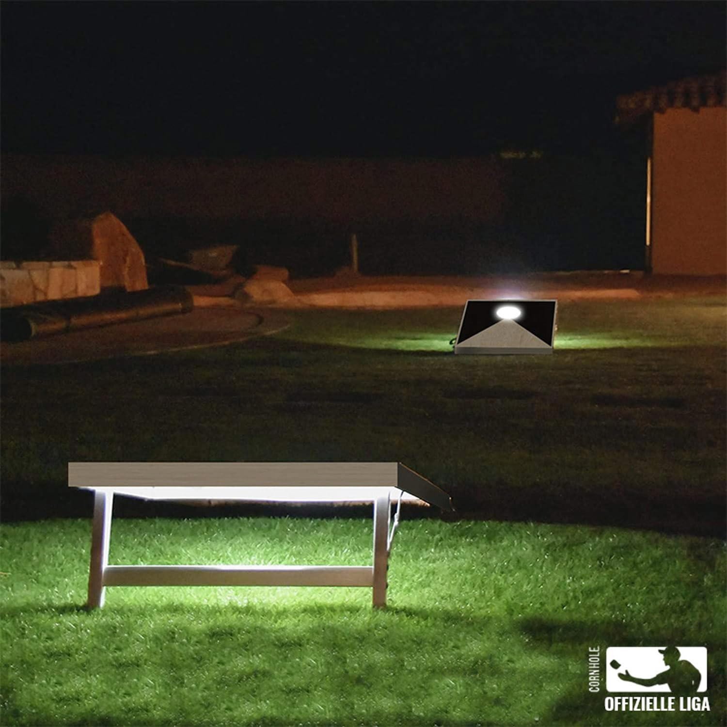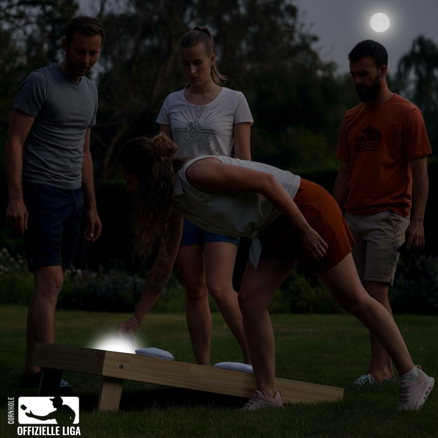 ["🔝 🌽 CORNHOLE: The Cornhole is an American skill game. The goal is to aim for the hole on the opponent's board with the red or blue bags. Players take turns throwing their bags, and the first player to get all their bags in wins the game. The 2 boards must be 27 feet apart and players must throw behind their board.","📦 🚀 GESAMTPAKET: This official Cornhole set includes 2 wooden boards with LED lights and 8 black and white fabric bags. It is lightweight and very space-saving, making it the perfect outdoor game to take with you on weekends or vacations!","⭐ 💎 PREMIUM QUALITY: Scratch resistance and optimal dimensions for storage and transport. Compact boards measuring 90 x 60 cm and grain bags of 15 x 15 cm.","👍 🎉 EASY & INDISPENSABLE: Fold out the feet of the 2 boards and place them 27 feet apart on the ground. Lightweight and easy to transport, you won't want to go without them on weekends or evenings!","🥇 🏆 REFERENCE: Original Cup is the reference for Beer Pong and drinking games in Europe. All our products are tested and approved by our members on memorable nights, sometimes hard to remember!"]