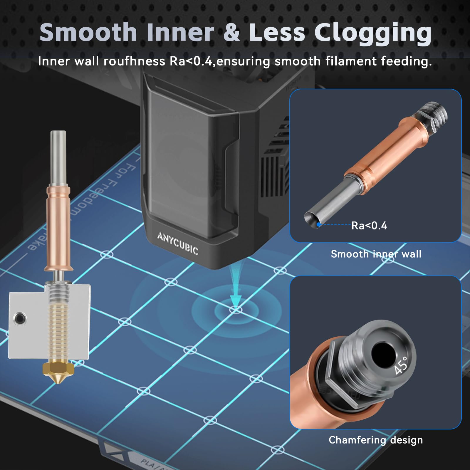 ["【Original Kobra 3 Hotend Replacement】This hotend is only compatible with Anycubic Kobra 3, Kobra 3 Combo, Kobra 3 V2 3D printers, NOT for other 3D printers.","【High-Speed Printing】The special volcano nozzle design ensures smooth filament flow, and it can support high-speed printing.","【High Precision】With inner wall roughness Ra<0.4 and chamfer design, smooth filament feeding with less clogging is ensured, improving print results.","【Filament Compatibility】This Kobra 3 hotend works great with 1.75mm PLA, ABS, PETG, TPU, PP, PC, PLA-CF, PA-CF, PET-CF. Supports high-temperature filament ≤300 °C.","【Easy Installation & Maintenance】Please follow the official instructional video step by step. For further assistance, please contact our customer service."]