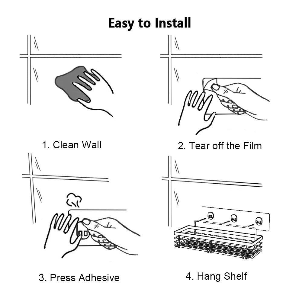 "5 hooks and detachable design: Our product features 2 side hooks for hanging razors or washcloths, 3 front hooks for hanging sponge or towels. The shower caddy is easy to remove from the adhesive hooks for cleaning or repositioning."