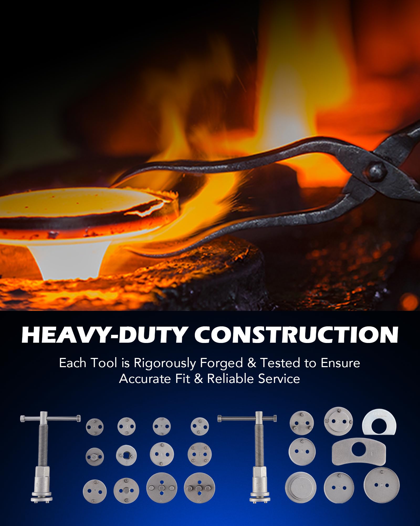 EASY TO USE: Attach the plate to the handle, select the disc adapter that fits your vehicle, and turn the pistons back into their calipers to release your brake pads. Embedded magnets in each pressure bolt assembly easily hold your drive keys and adapters in place during use.