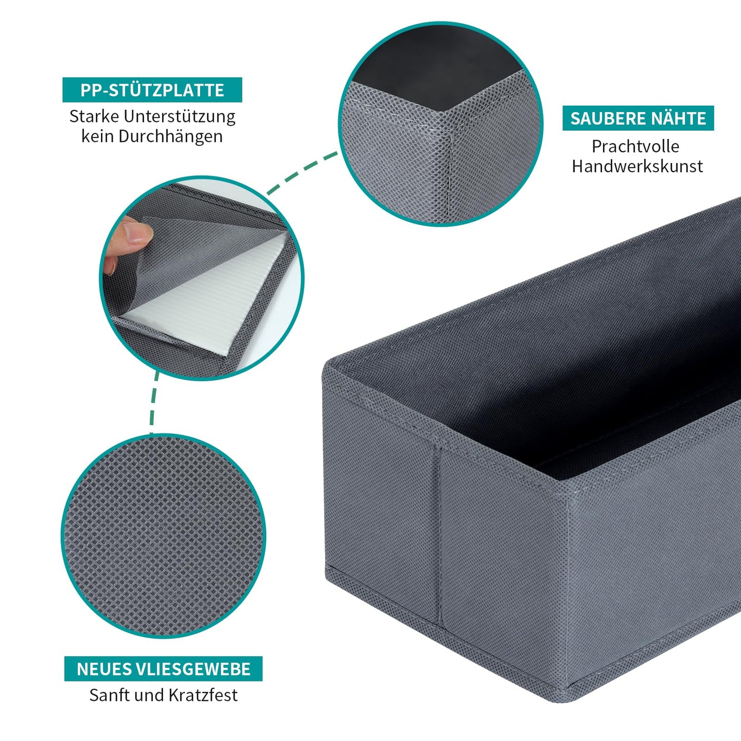 ["Practical Drawer Organizer: With the ORLISA Drawer Organizer, everything has a \"home.\" It helps create space, makes accessing items easier, and ensures everything stays organized.","Fits PAX Organizer: This wardrobe organizer is specially designed for the PAX wardrobe 50x35. It provides a custom solution that efficiently and practically utilizes the available space in your drawers.","Durable Easy to Clean: The wardrobe organizers are made of breathable fabric and reinforced PP panels. The set is durable, stable, and can be easily cleaned with a damp cloth when needed, ideal for long-term and orderly storage of clothing and accessories.","Foldable Easy to Assemble: The wardrobe organization system features a user-friendly design for quick and hassle-free assembly. In a few seconds, you can insert the base plate, securely fix the wardrobe organizer, and start using it immediately. When not in use, it can be easily folded up, saving space and easy to transport.","Practical Sizes: The set of storage boxes includes 1 large square container (30 x 24 x 11 cm). These boxes help you efficiently organize your clothes and keep your drawers clean and organized."]