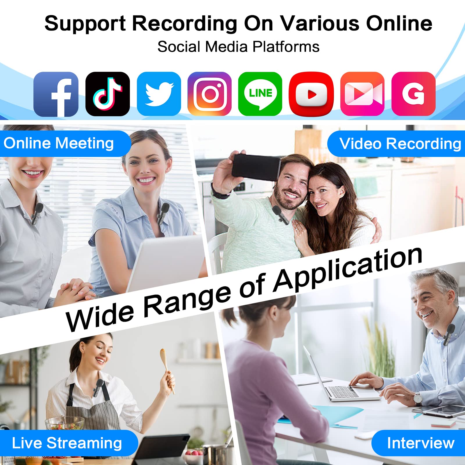 Dual Wireless Microphones: This wireless lavalier microphone kit includes 1 receiver, 2 microphone transmitters, and 2 adapters, making it possible to record sound or video from both 2 parties at the same time. You can also use a microphone and receiver set. Note: Please read the user manual and charge the wireless lavalier microphone before using it for the first time. If you are using the TRRS plug to connect devices, you need to remove the receiver to hear the audio playback.