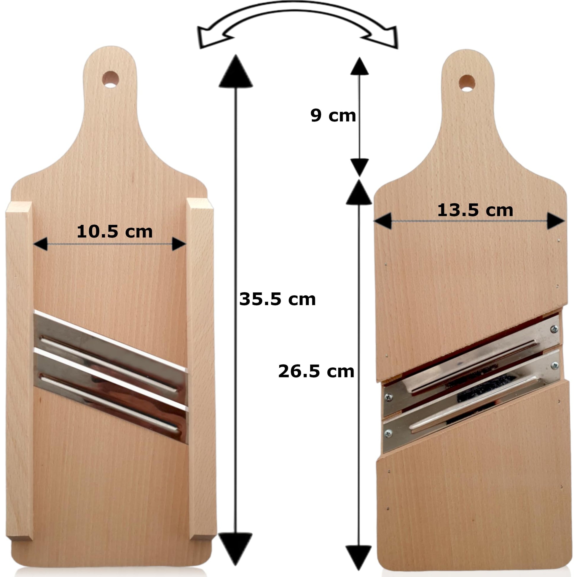 High-quality materials: Our vegetable slicers are made in Europe from natural beech wood and very sharp stainless steel blades that are food-safe and factory-set for fine and thin cuts.