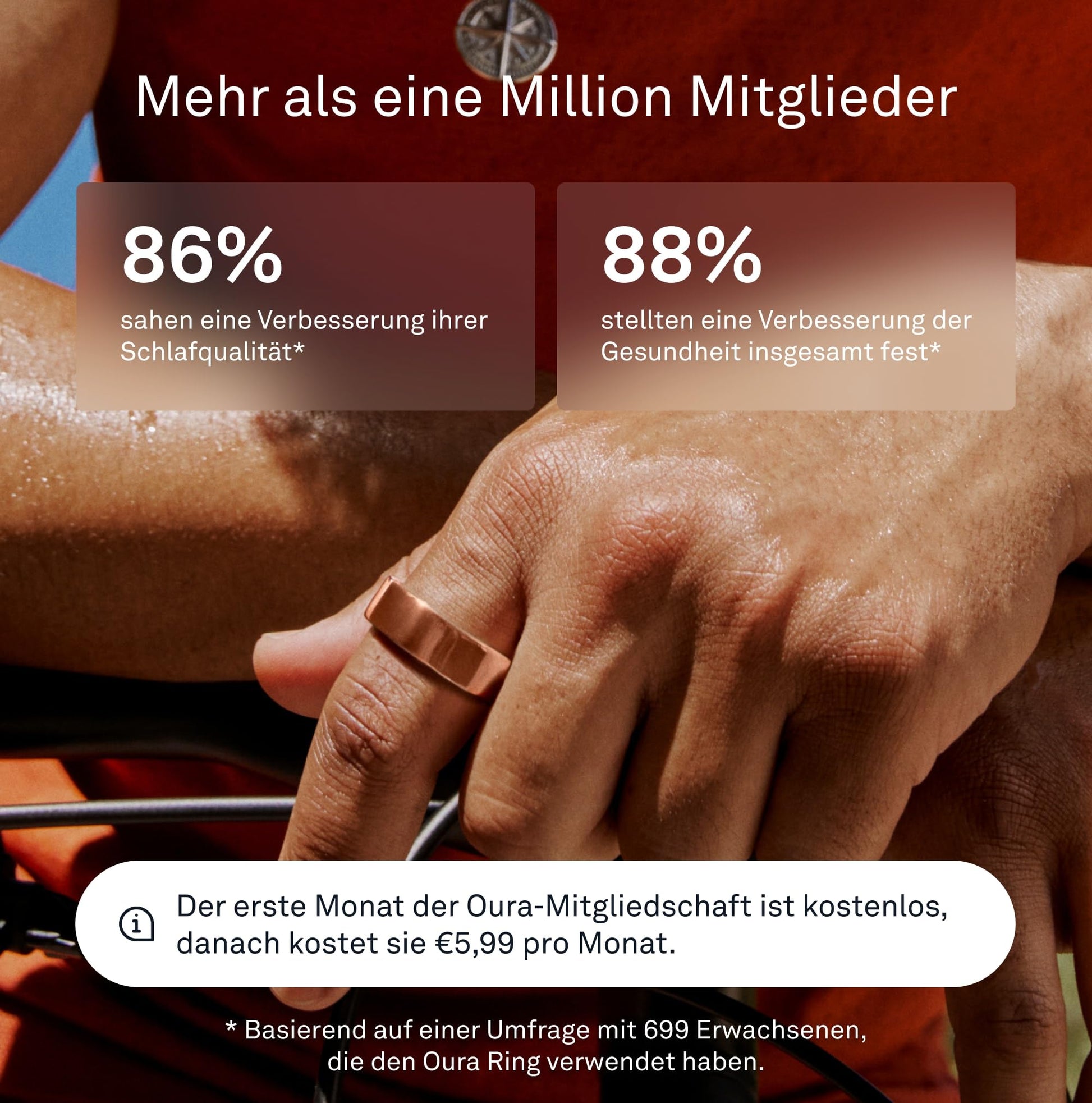 ["MEASURE BEFORE PURCHASE - The Oura Ring 4 sizes differ from standard ring sizes. Measure yourself with the Oura Ring 4 Sizing Kit and receive a 10 EUR Amazon credit for future Oura Ring 4 purchases.","OURA MEMBERSHIP - The first month of membership is free with your purchase, then 5.99 EUR/month. Offer only valid for new members. Or opt for the annual prepaid option for 69.99 EUR.","ACCURACY - SMART SENSING - Oura captures over 30 biometric data points, including sleep, activity, stress, heart health, and women's health metrics. The Oura Ring 4 features Smart Sensing that adapts to you.","LONG-LASTING BATTERY - With a battery life of up to 8 days, without a screen or vibrations, the Oura Ring 4 allows you to focus on the present. Whether during workouts or evenings out.","DESIGNED FOR 24/7 WEAR - The updated design of the Oura Ring 4 is even more comfortable, fits better than ever, and is waterproof. The first smart ring made of titanium combines exceptional durability with a gentle touch."]