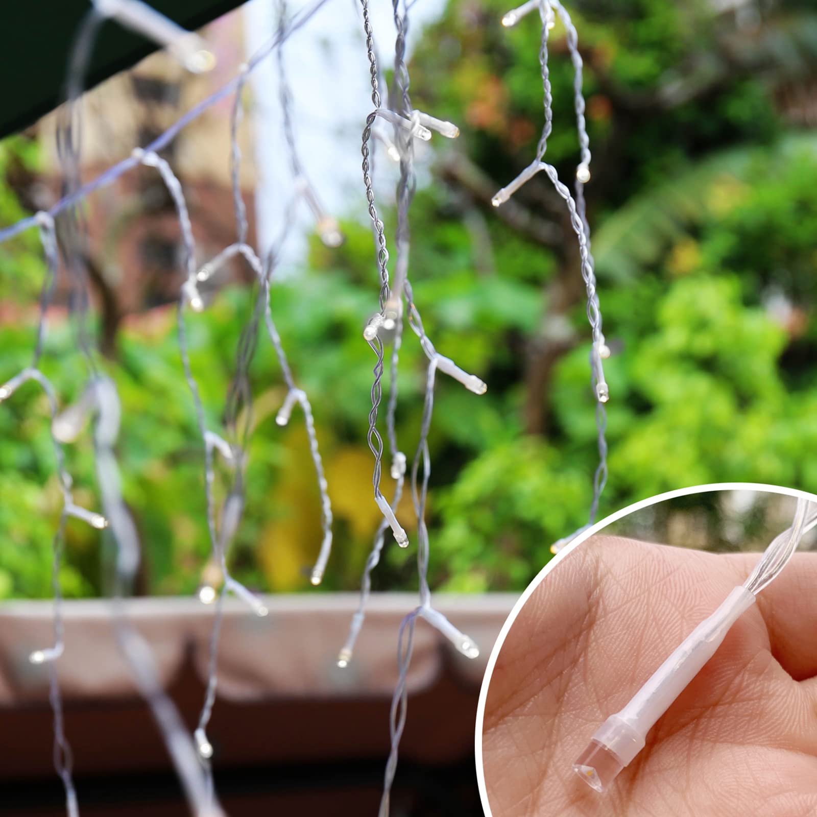 "【IP44 WATERPROOF】Anti-cold and Waterproof LED string lights, IP44 waterproof LED lights for protection against frost. Ideal for outdoor decoration, works perfectly even in cold winters and wet environments.",