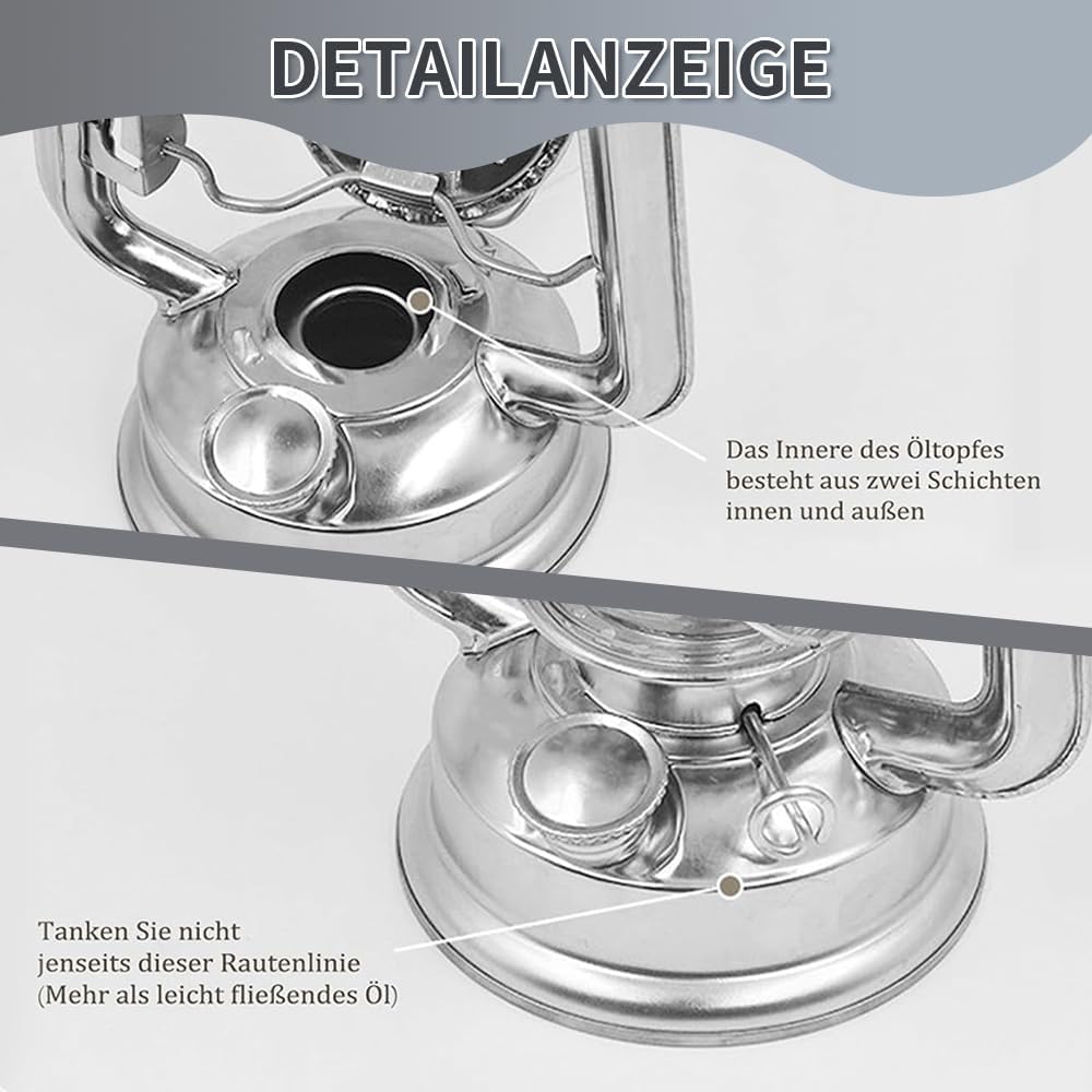 ["đ„ăPremium MaterialăMade of fire-resistant glass and galvanized steel, the kerosene lamp was mechanically manufactured and hand-polished. Stable performance, long lifespan. The oil lamp has a large capacity with high brightness.","đ„ăRetro DesignăRetro design and fine workmanship, suitable for decoration, hook for easy hanging. It is suitable for living room, bedroom, dining room, bedside table, desk, but also for outdoor camping.","đ„ăEasy to UseăEasy operation, no installation required, it can be used with safe fuels such as kerosene, diesel, ghee, etc.","đ„ăBest GiftăOil lamps are the best gift for friends, family, children, elders, and so on.","đ„ăPrecautionsăLight with safe fuels such as paraffin, diesel, etc. Fill about 70% of the fuel into the oil lamp. To prevent fuel leakage and fire hazards, do not add 100% and prohibit the use of gasoline as well as dangerous substances like alcohol."]