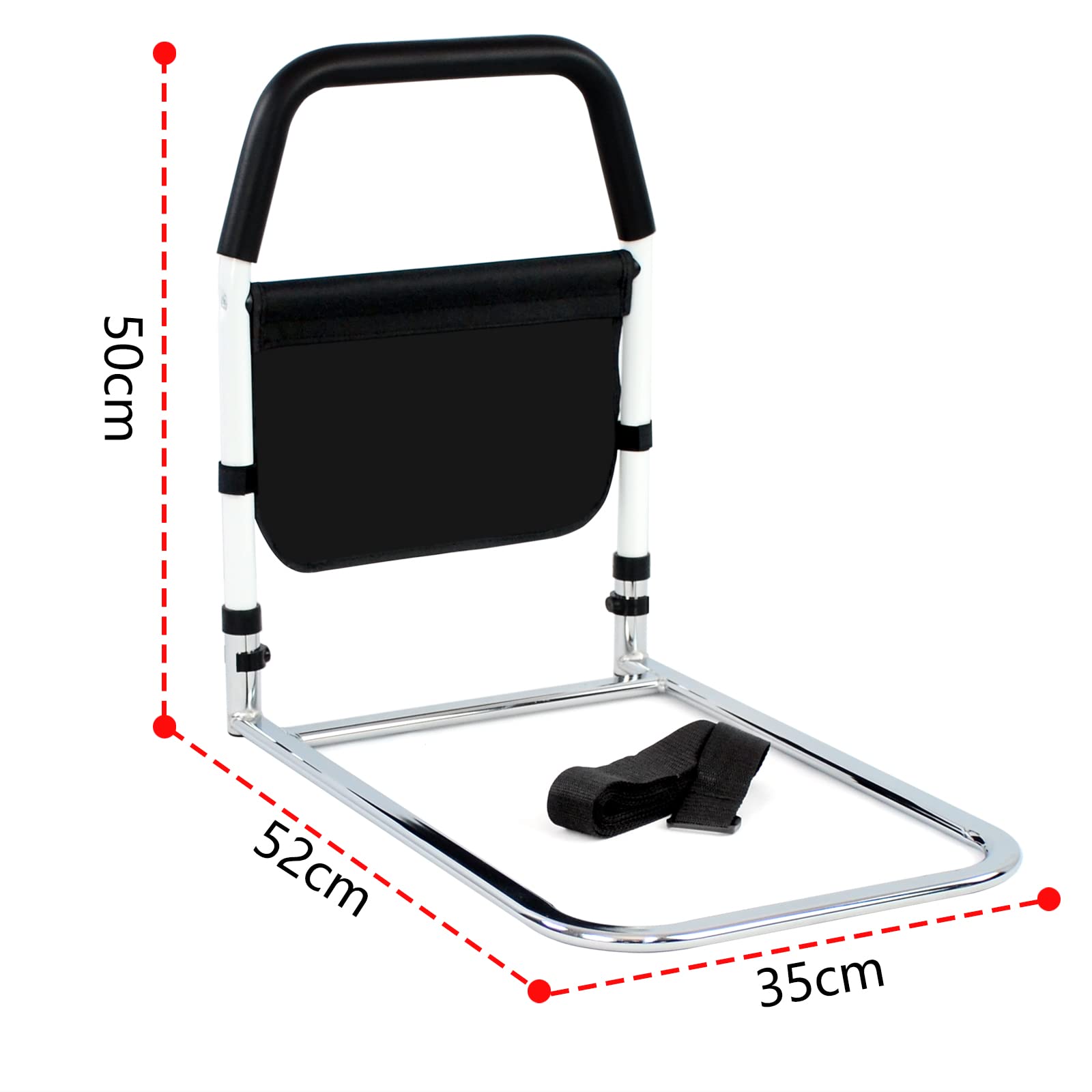 ["【Multifunctional Bedside Rails】Net weight: 6.17 lbs. The large, beautiful, and removable storage bag can hold daily necessities such as cell phones, glasses, tissues, medications, books, etc.", "【Sturdy Material】The thickened carbon steel and electroplating paint process make the product look exquisite and smooth without burrs, and the quality is reinforced. It can support 330 lbs. The thickness of the bottom flat tube is only 0.39 inches, even a 2-inch thin mattress will not feel it.", "【Wide Design】Compared to the 9.8–11.8 inches wide accessories on the market, this 13.8 inches wide bed rail provides better protection and effectively supports elderly, disabled, or those in need when getting in and out of bed. The lower support area is large, and the accessories compress the mattress to ensure safety and stability.", "【High-Quality, Easy to Assemble】Patented design, no drilling and no installation, saves worries for those in need and can be disassembled and stored away when not in use. Each bed rail includes all devices needed for installation.", "【Suitable For All Types Of Beds】The armrests are wrapped with elastic foam sponge, which is non-slip, freeze-proof, sweat-absorbing, and comfortable. With a 13.78-foot long fastening strap that helps secure the rail and make it more stable. Suitable for all types of beds, such as old flat beds, bunk beds, box spring beds, etc."]