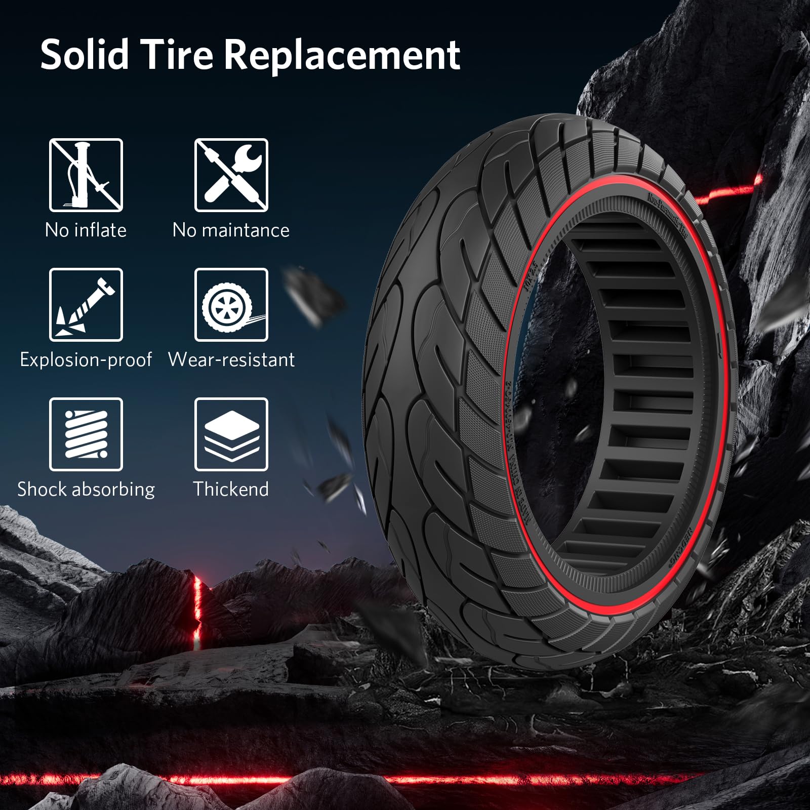 ["🛴【Upgrade Solid Tires】- These solid tires are specially designed for the Ninebot Max G30P/G30LP electric scooter. Solid tires are designed to eliminate road irregularities. They are not easily punctured by sharp objects. The tires do not need frequent inflation and changing. Universal for front and rear wheel",