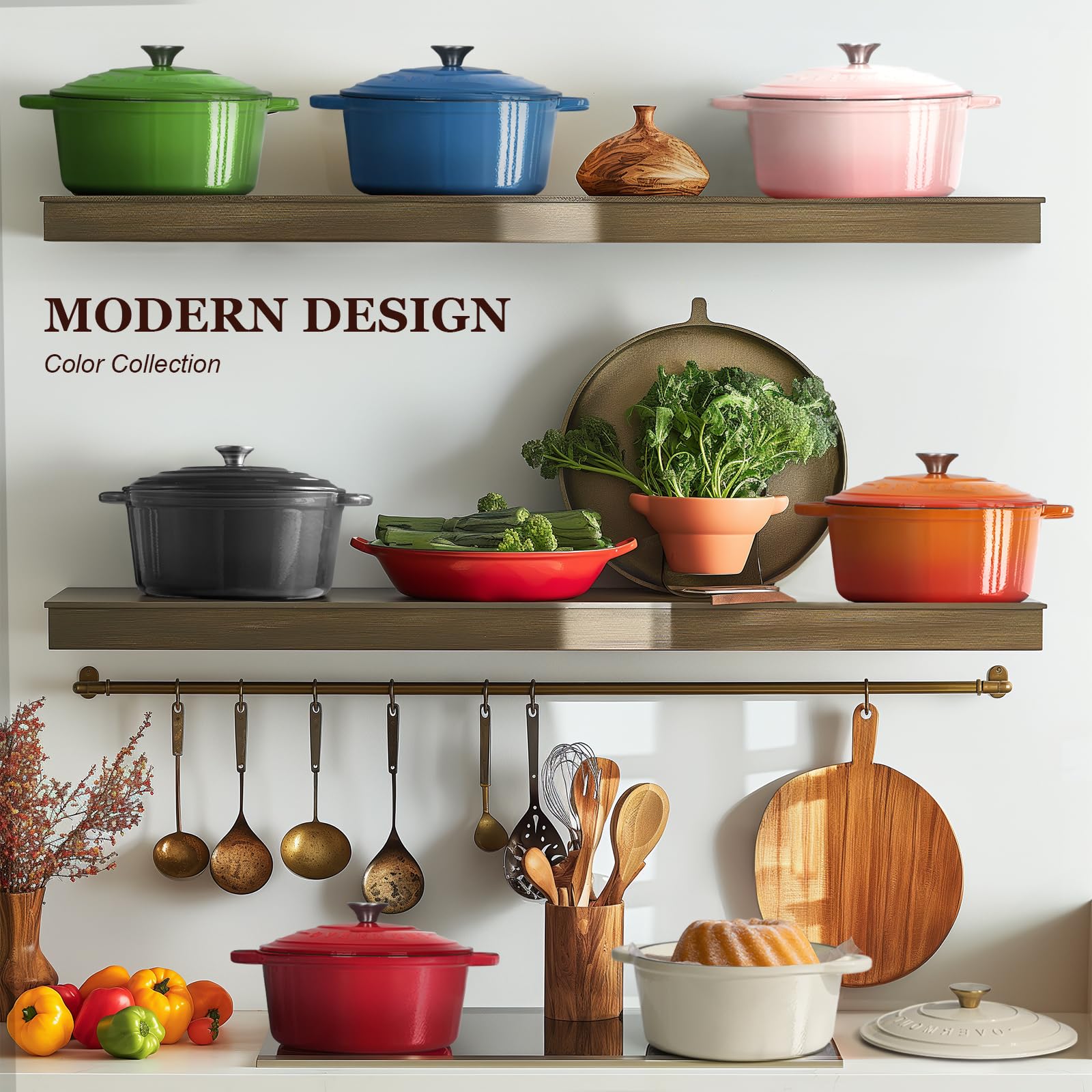["【Multifunctional Enameled Cast Iron Pot 】Braising pot roaster for braising and roasting meat and vegetables. Ideal for making soups and stews or baking bread.","【Energy Saving 】Enameled cast iron pot provides excellent heat distribution and retention. The water vapor condenses on the lid and falls evenly to keep the food at the right moisture level and taste better.","【Applicability】Enamel roasting pot suitable for gas, electric, ceramic, and induction stoves, oven safe up to 500°F. Not suitable for use in microwave ovens.","【Easy Cleaning 】Note: To make your enamel pot last longer, we recommend hand washing it. The flat and smooth enamel surface is easy to clean, food residue can be easily removed with a soft sponge or cloth.","【Package Includes】1x Overmont roasting pot Ø 26 cm with lid, 1x cookbook, 2x pot holders, 1x silicone pot holder"]