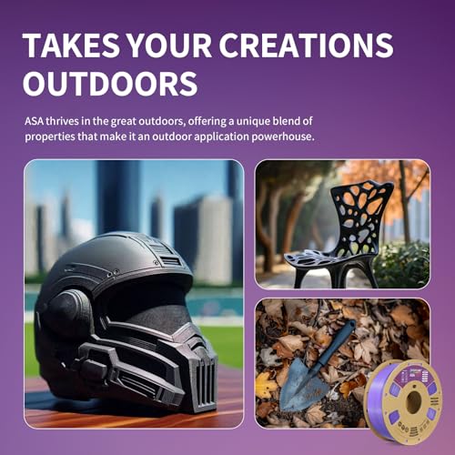 ["【Weatherproof】- OVERTURE ASA UV filament has all the properties of 3D filament ABS with additional features that are weatherproof. Our ASA is UV resistant and resistant to stress crack corrosion. OVERTURE ASA can be used for outdoor applications such as RC planes or outdoor car accessories.",