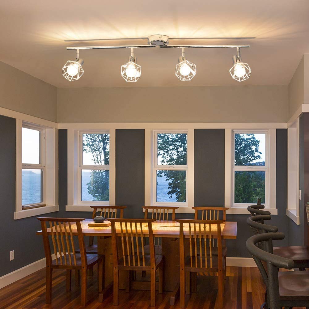 ["⭐【Vintage Design】Stainless steel ceiling light in high quality chrome, chrome full color and wire basket. The soft light can penetrate through each hole. Very pretty. With metal body, it is durable and has a 30,000-hour lifespan.", "⭐【4-LED(LED bulbs incl.)】The package includes four 4W E14 LED bulbs. 1280 total lumens brightness. Brighter than a 60W incandescent bulb. 3000K warm white. CRI 85+. Produce a more accurate color reproduction of objects.", "⭐【Swivel & Rotatable】There are 2 adjustable rods with 4 swiveling lamp heads. By adjusting the lamps, the light brightens all directions. The arm can rotate 350°, each head can rotate 330°, and 90° up and down.", "⭐【Wide Applications】Perfect for art walls, it adds a bit of simple ambient lighting. The ceiling light provides a pleasant atmosphere when turned off. Ideal for bedrooms, living rooms, kitchens, hallways, offices.", "⭐【Easy Installation】All mounting parts and a canopy mounting plate are prepared for quick and easy installation. The ceiling light can be installed on a sloped or vaulted ceiling."]