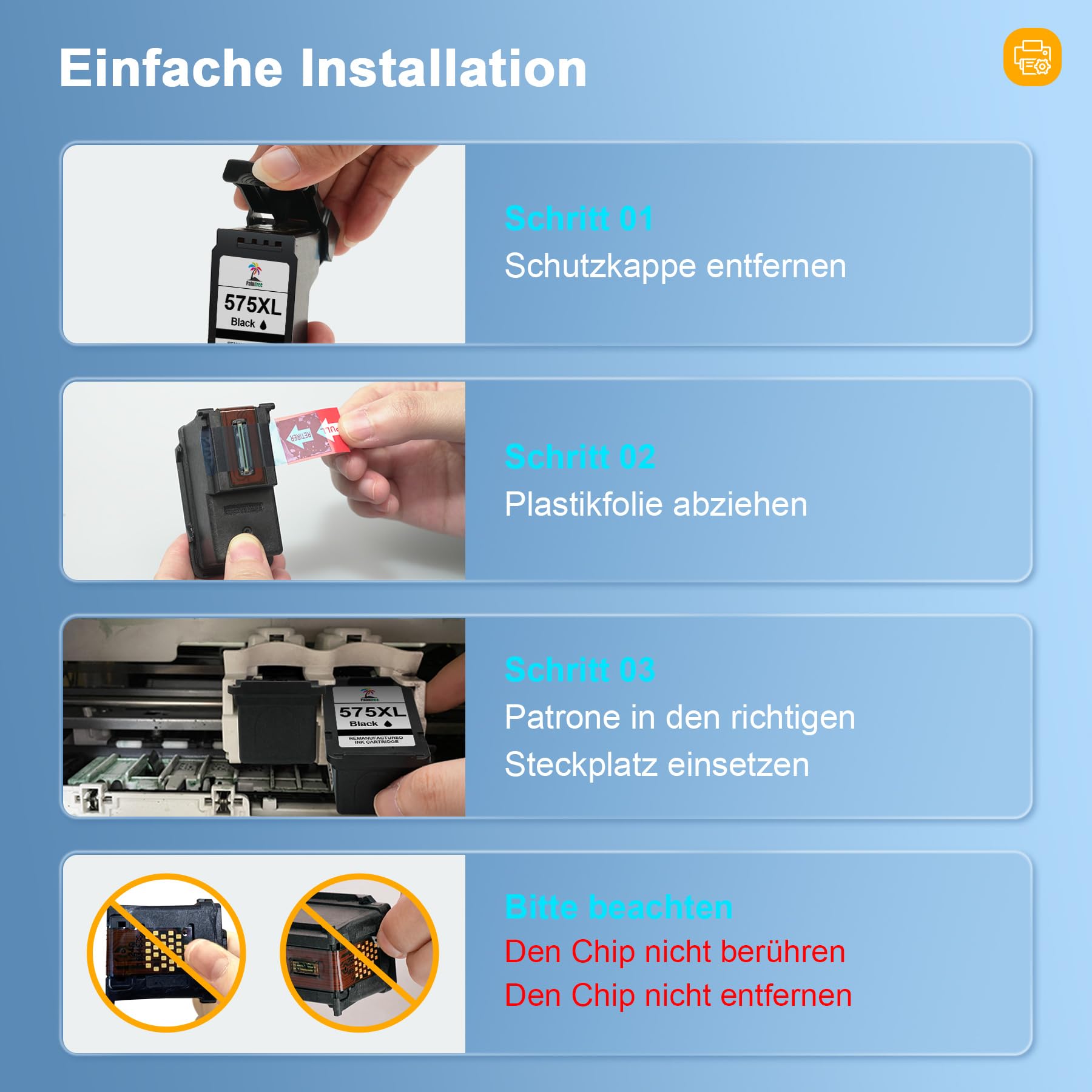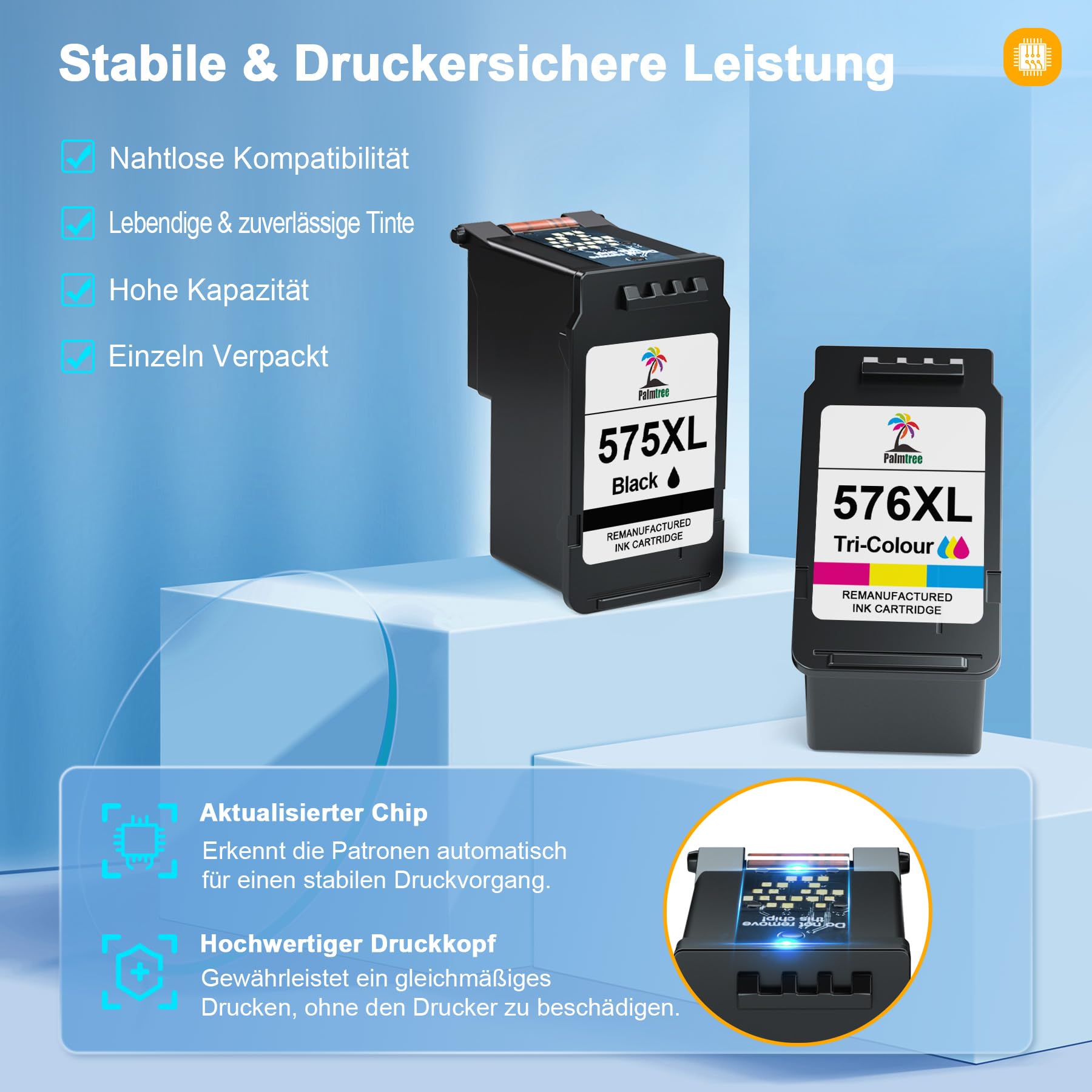 Reliable Print Quality: The Palmtree 575XL and 576XL ink cartridges deliver crisp text and vivid images - ideal for everyday documents and colorful photo prints at home or in the office. They are designed for durability and provide consistently high print quality with consistently reliable performance - perfect for capturing memories or effortlessly handling work tasks.