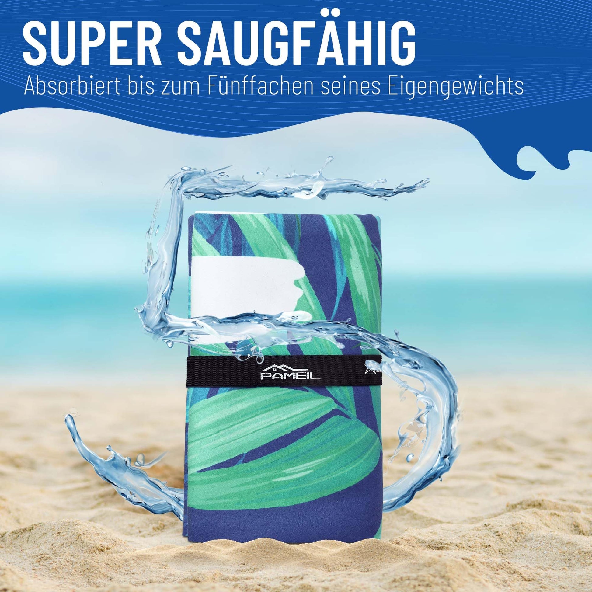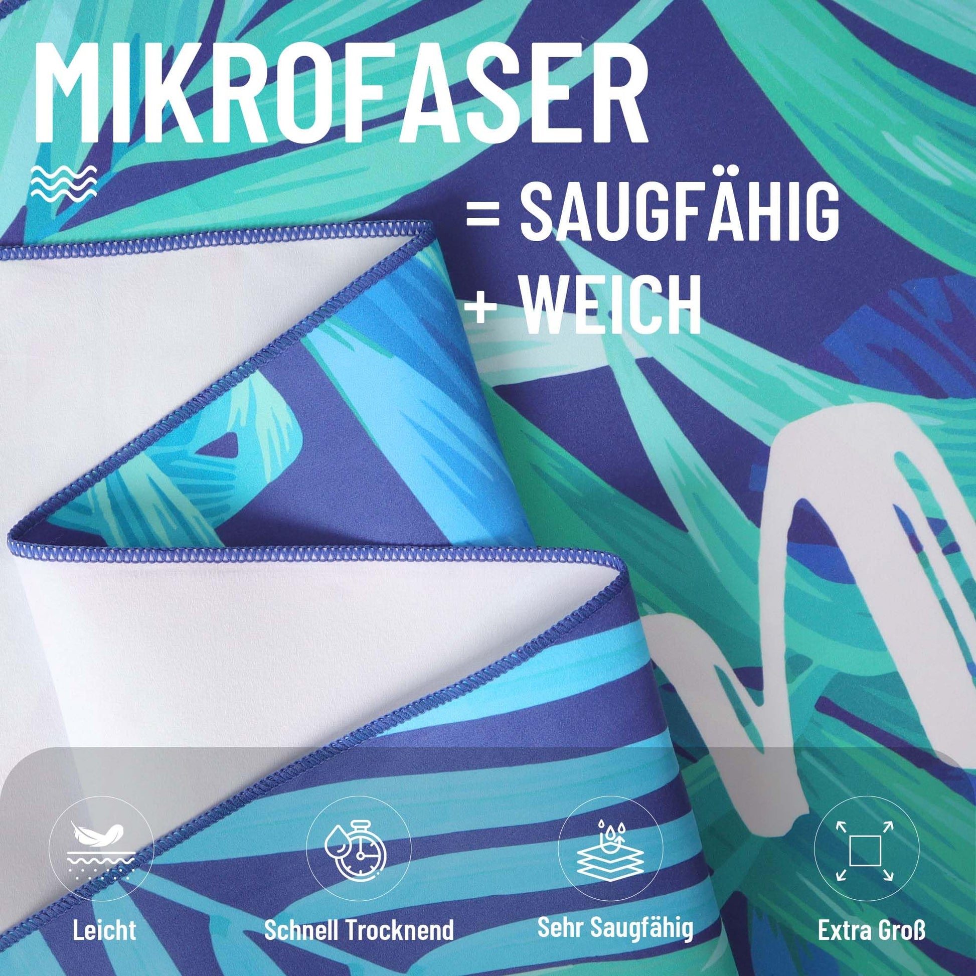 "FÜHLBAR SANFT UND SAUGFÄHIG - Our durable microfiber beach towels are pleasantly soft and absorbent. Your ideal travel towel for the next beach or camping vacation.