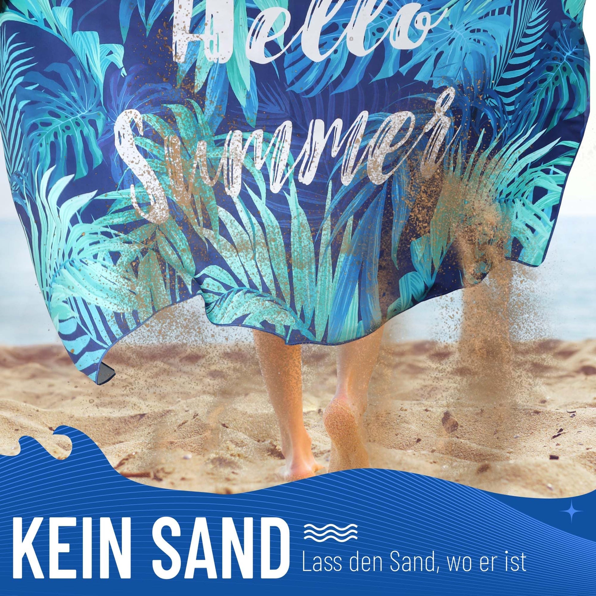 SANDFREI UND SCHMUTZABWEISEND - Due to the special microfiber structure, our beach towel remains free of sand and dirt. The integrated elastic hanging loop helps with packing. The material is extremely fast-drying and does not absorb odors like cotton towels.
