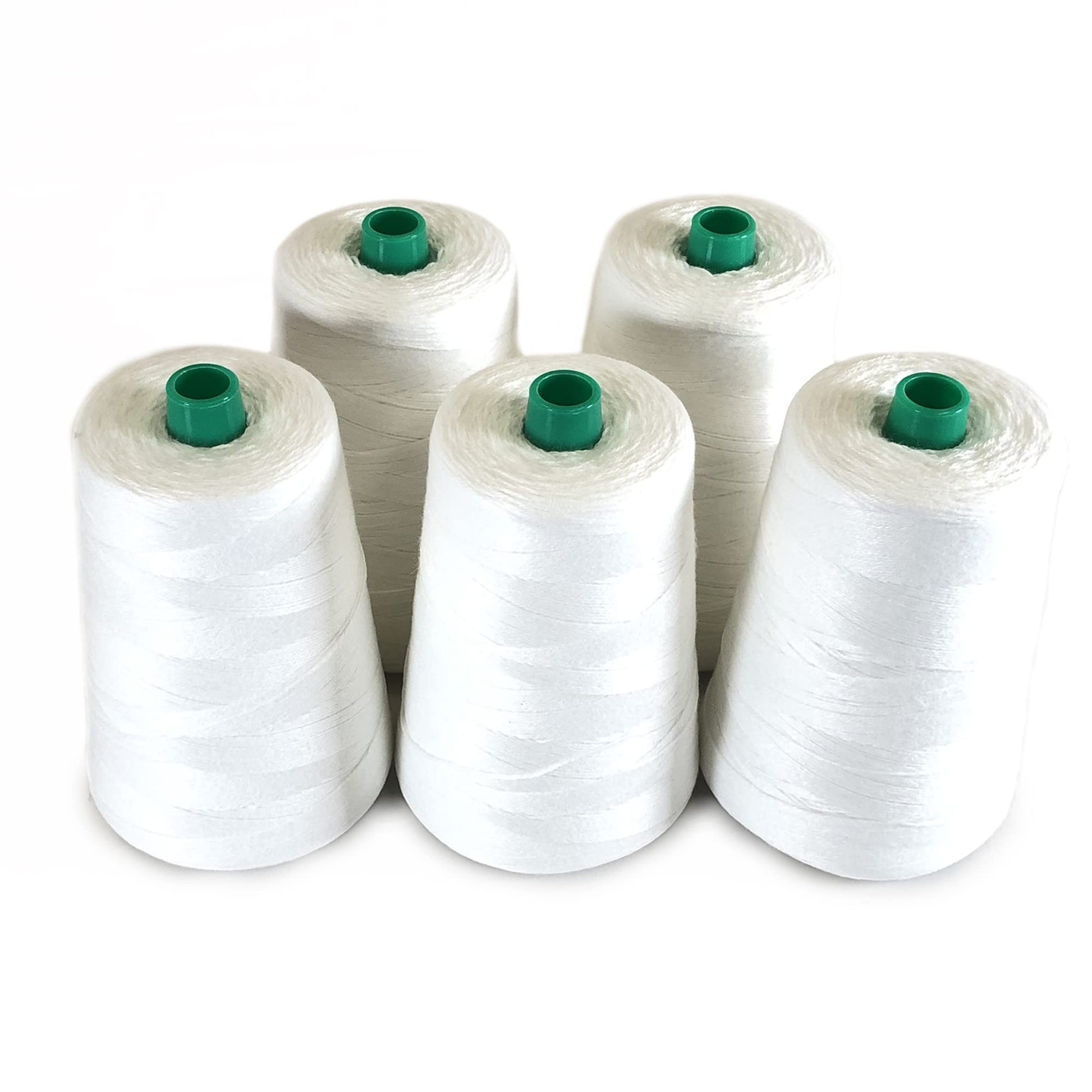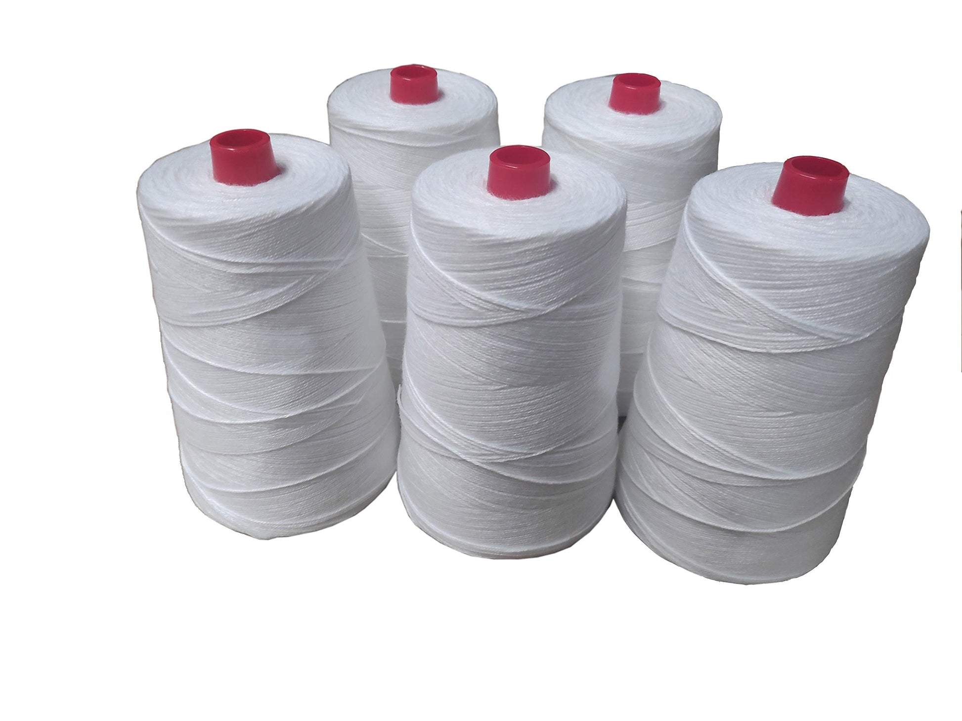 PAMPOLS pack of 5 rolls of thick polyester yarn for bag sewing machine | High strength rope for closing | Bags 5 cones of 20/4 of 200gr | White (White)