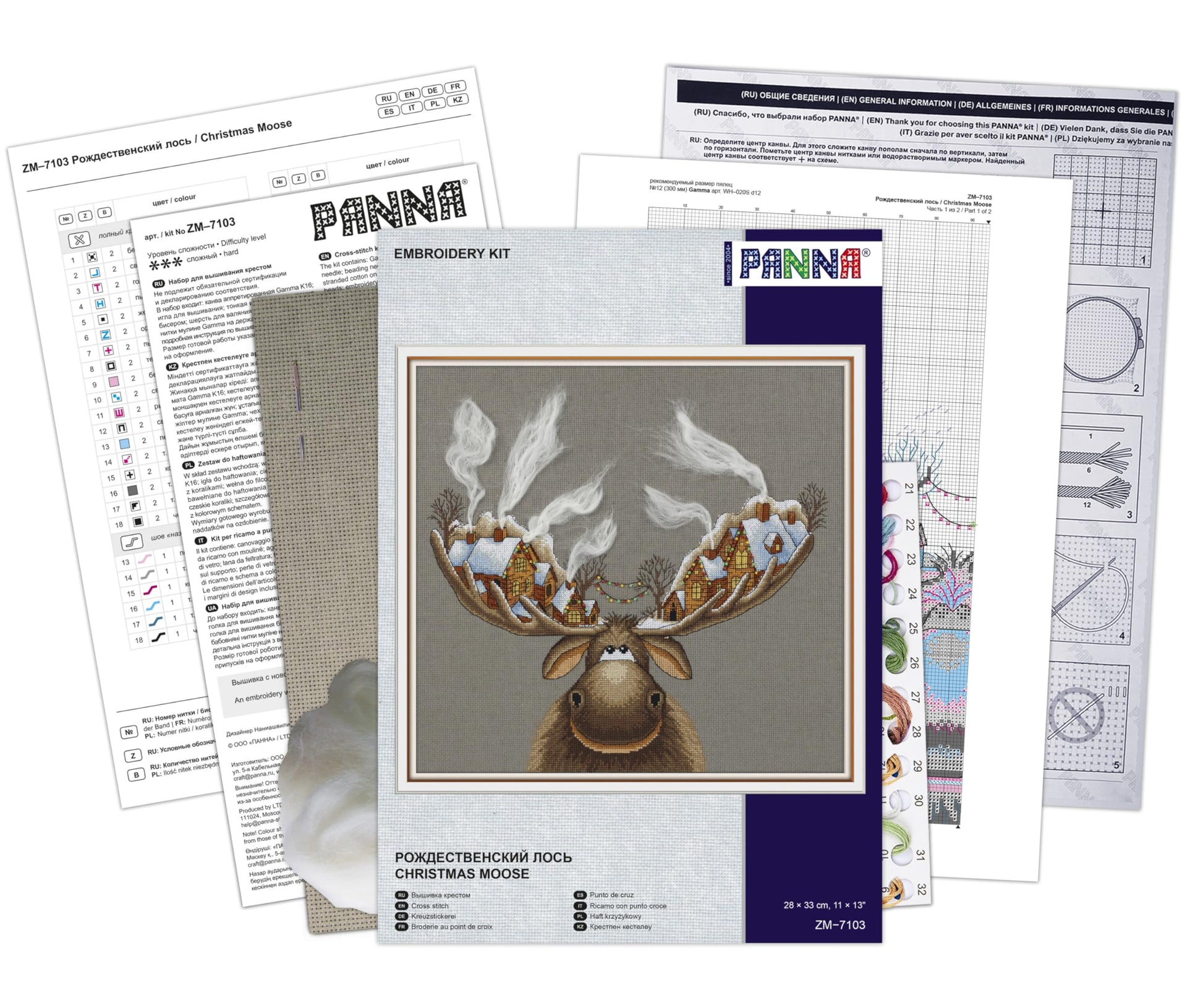 PANNA - Cross stitch kit - Christmas elk - ZM-7103 - Adult stitching - Aida fabric - 33 x 28 cm - DIY kit