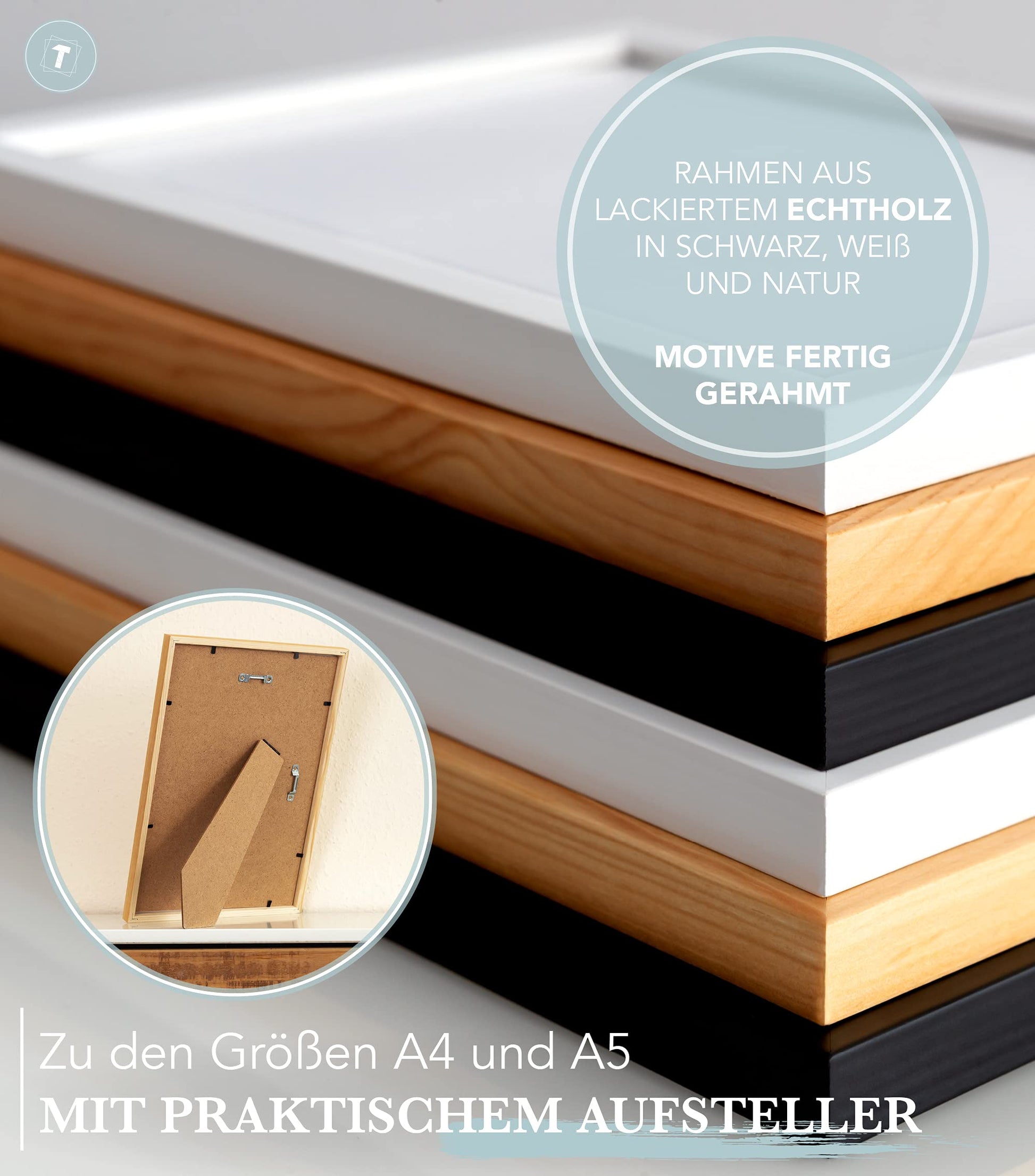 ["🌟 FOR EVERY CHILD'S ROOM THE PERFECT SET We offer a wide range of lovingly coordinated children's posters in many different sizes for the children's or baby's room.", "🌟 LARGE SELECTION For small & big; girls & boys; from pink to blue; colorful or pastel; from the animal safari to outer space. Our posters make children's hearts race.", "🌟 EXCELLENT QUALITY Our art prints are matte printed on very sturdy and high-quality photo paper to ensure a sharp image with vibrant colors.", "🌟 READY FRAMED INSTEAD OF JUST 'WITH FRAME' Your advantage with us: we frame your ordered art prints ready to hang. We offer real wood frames with shatterproof safety glass from A5 to A3.", "🌟 VARIETY OF SIZES In addition to standard DIN formats, we offer other dimensions (30x40, 20x30). We cut precisely & perfectly to ensure our designs fit in your favorite frames."]