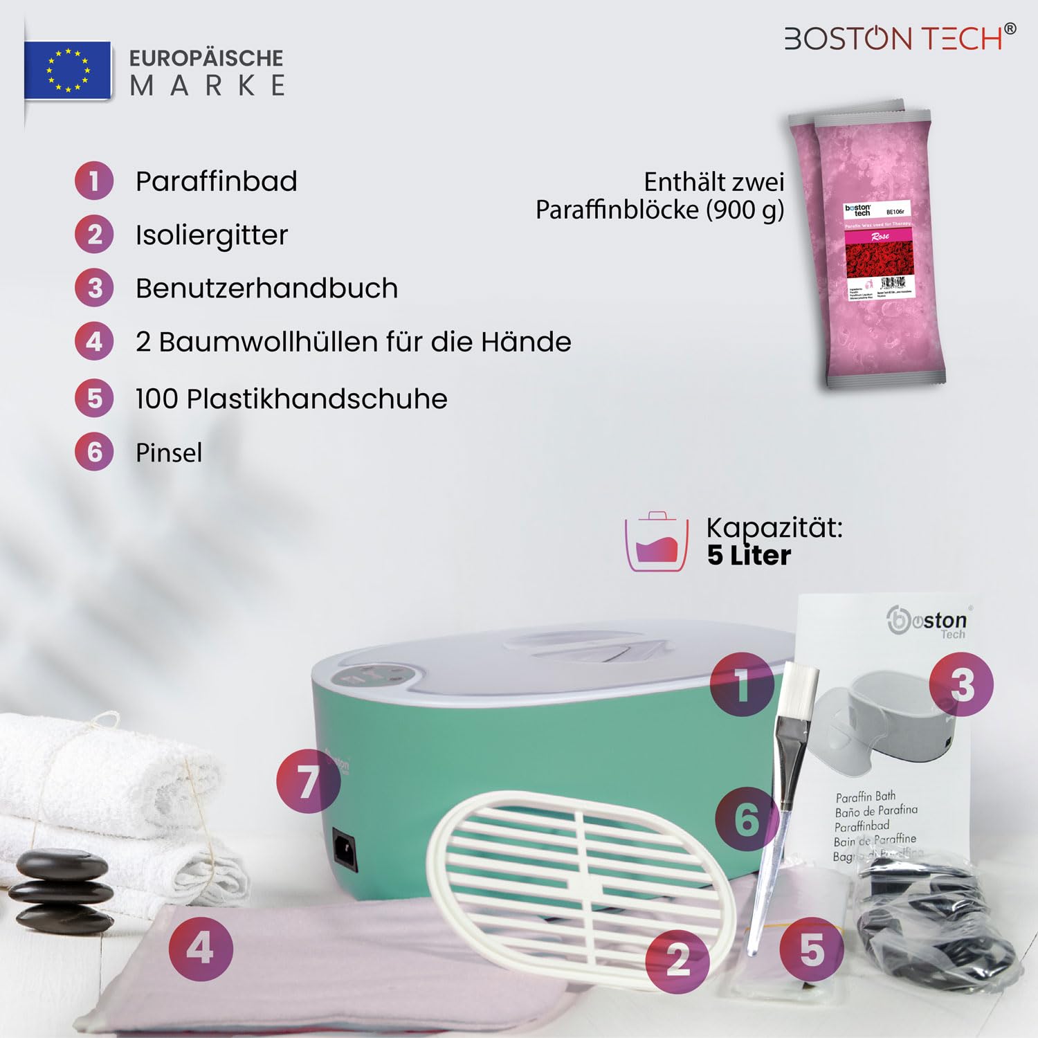 "WARMTH FOR WELL-BEING: ParaffinLux from Boston Tech offers a consistent paraffin bath with a constant temperature - ideal for caring for hands, feet, and joints.