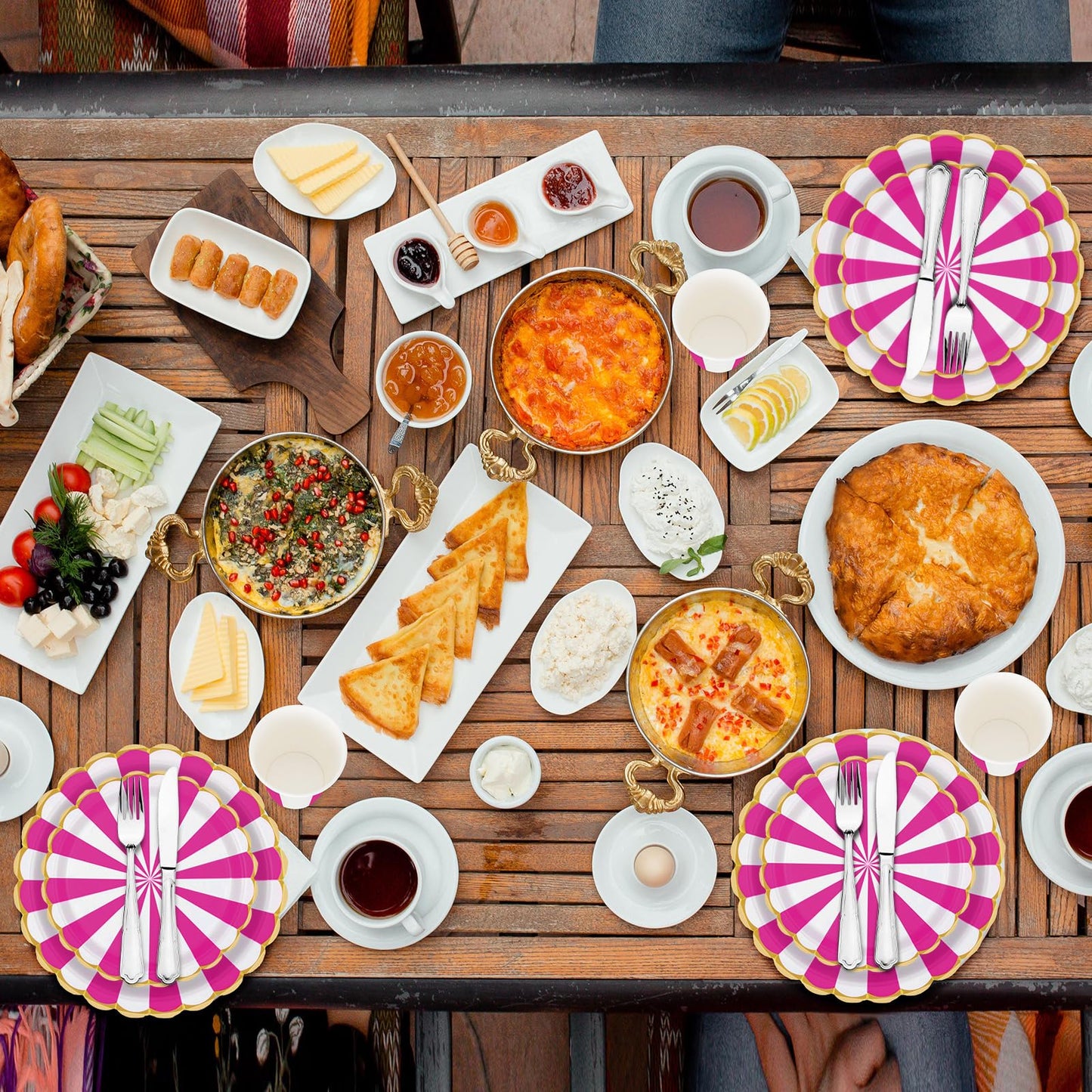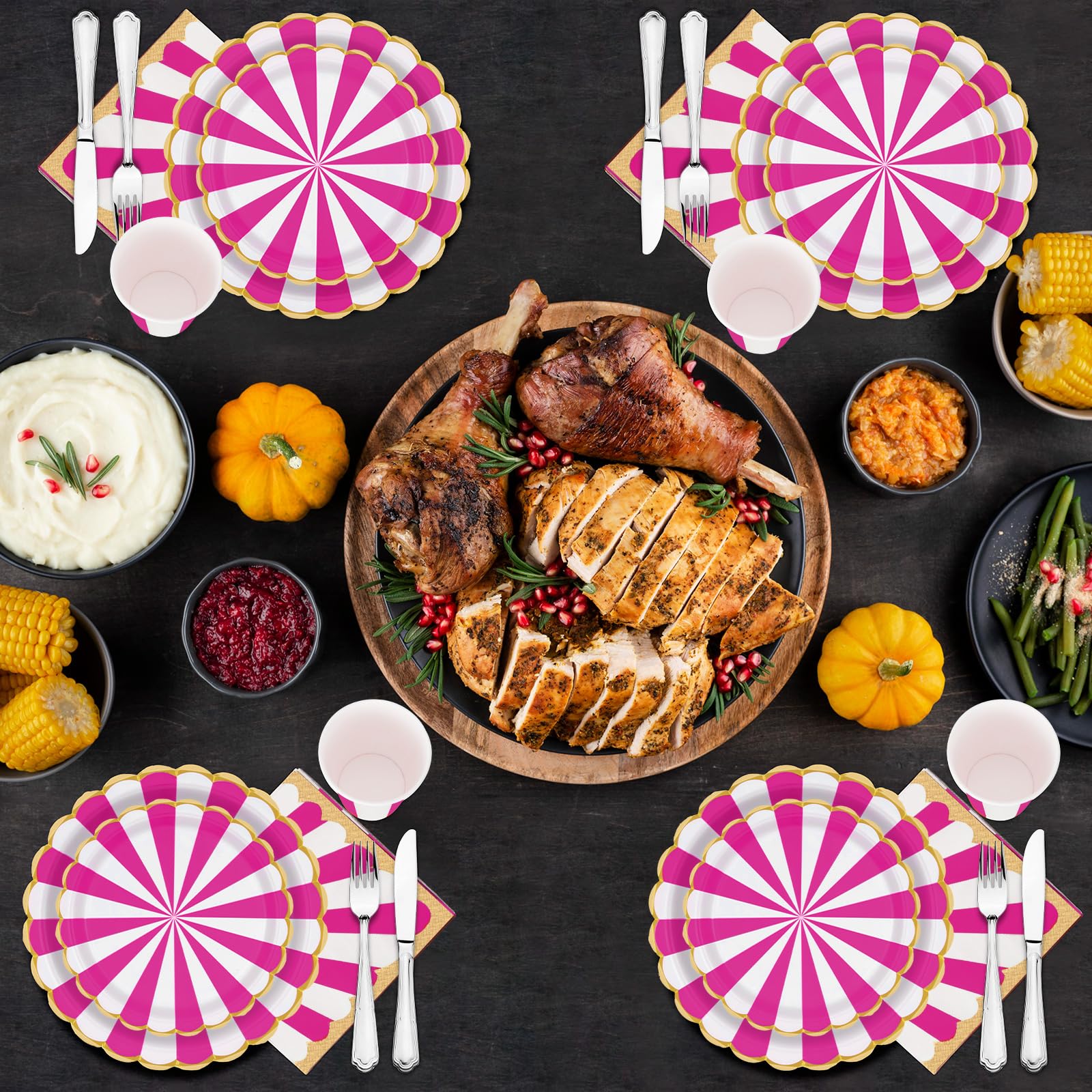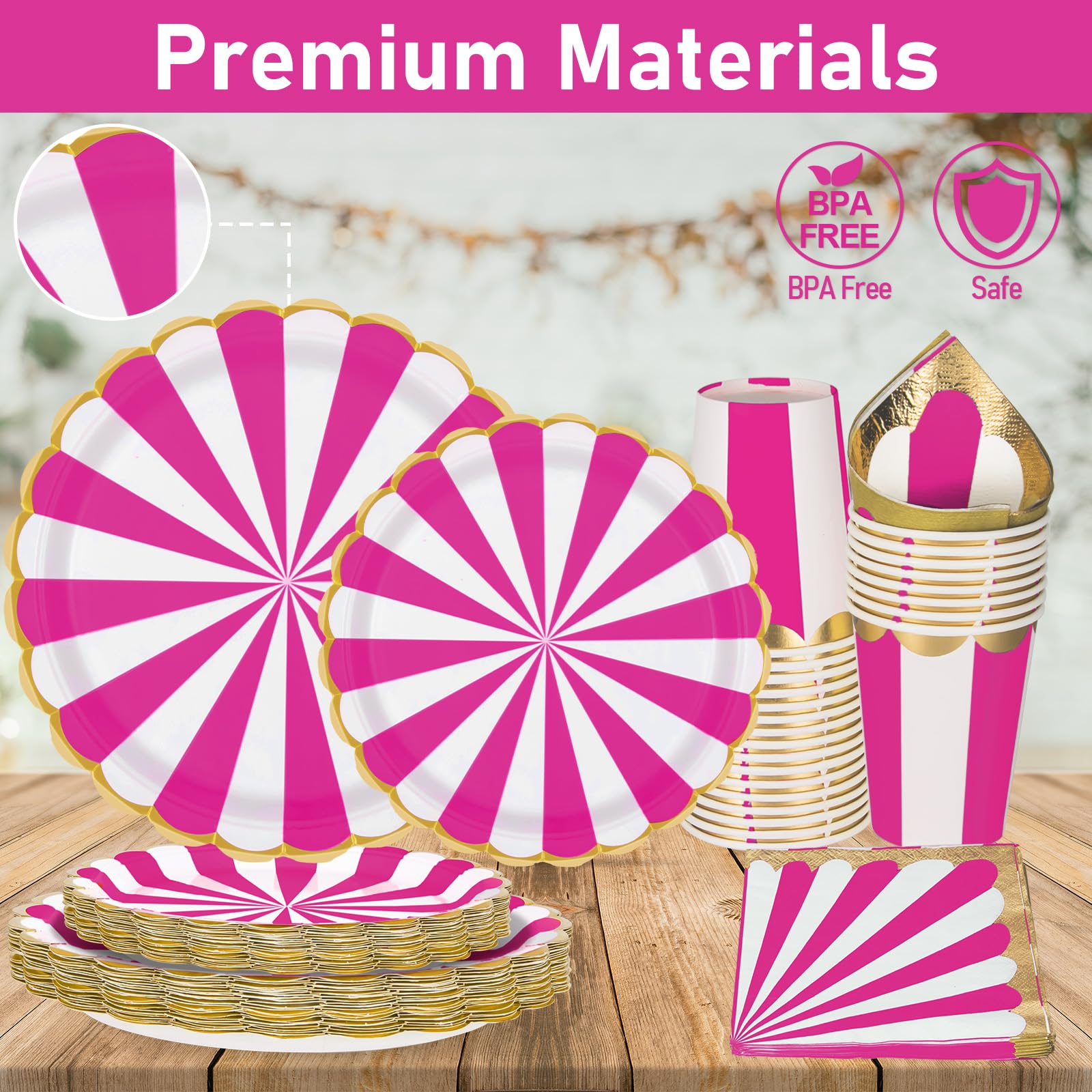 PARTY GO 96 Piece Partyware Set, Circus-themed Partyware Set, Peach and White Striped Circus-themed Birthday Tableware, Circus Party Supplies (24 Guests)