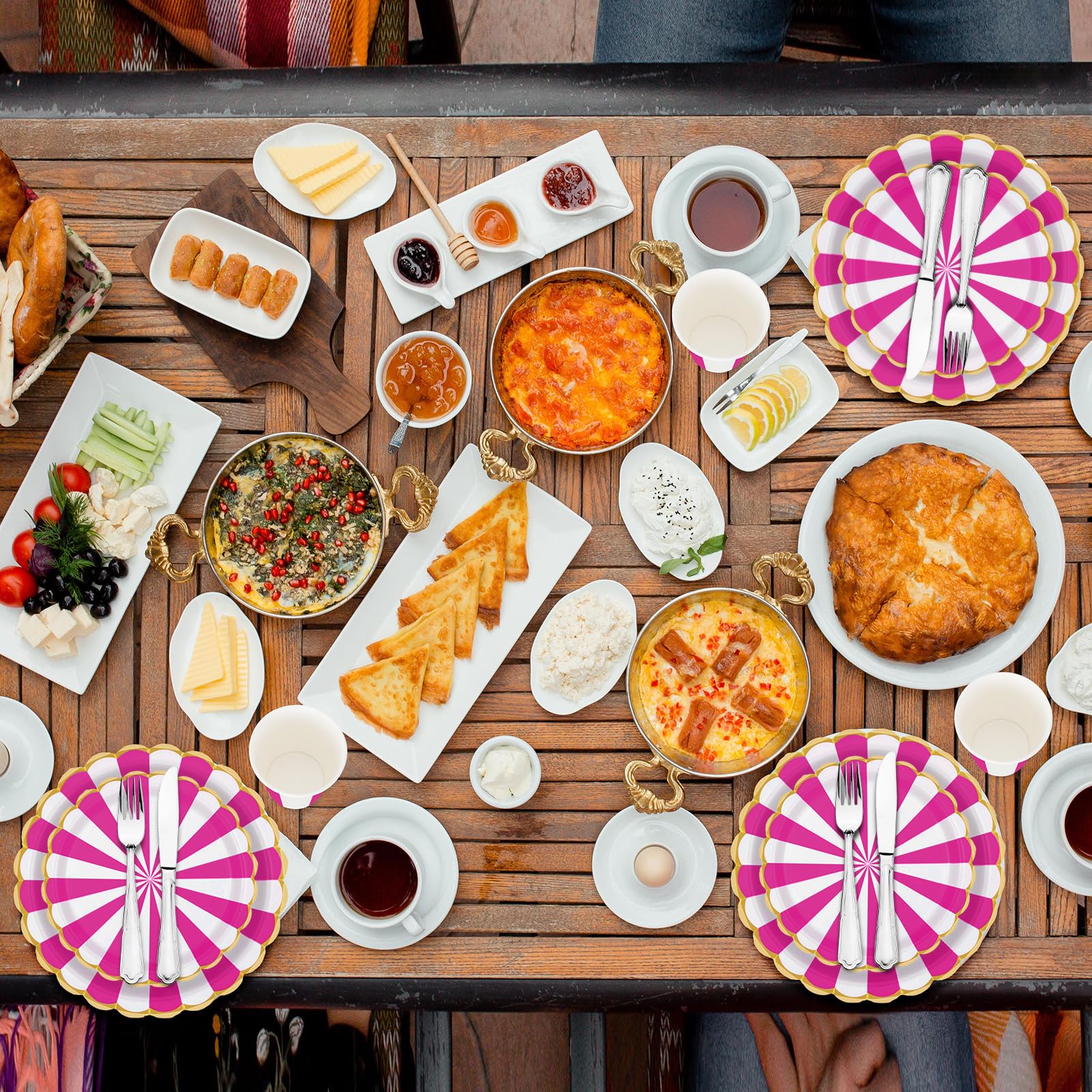 ["【 96 Piece Peach and White Party Tableware Set】including 9-inch plates -24, 7-inch plates -24, 24 - paper towels, 24 x cups","【Material】: The tableware set is made of high-quality food-grade paper. All party tableware is non-toxic and odorless, safe for children. You can use it without worry","【Easy and Convenient】At the end of your party, simply toss these disposable plates in the trash for a quick and painless cleanup, so you can spend more time with friends and family."]