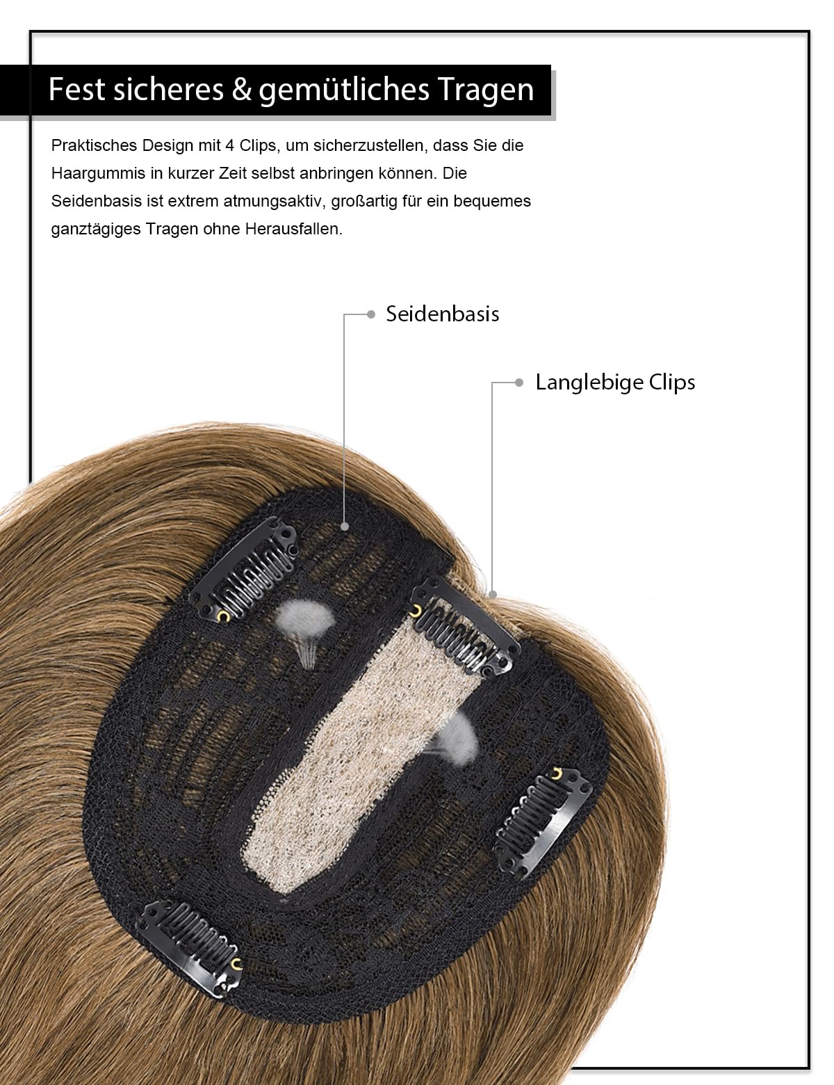 SEAMLESS & SECURE WEARING -- Comfortable design with 4 clips to ensure you can attach these hair toppers for women by yourself in a short time, neatly adding on your head and sticking firmly for comfortable all-day wear without falling out. Topper hair is ideal for occasions of wedding, party, family dinner, holiday, or just daily use. Bring a good mood all day long.