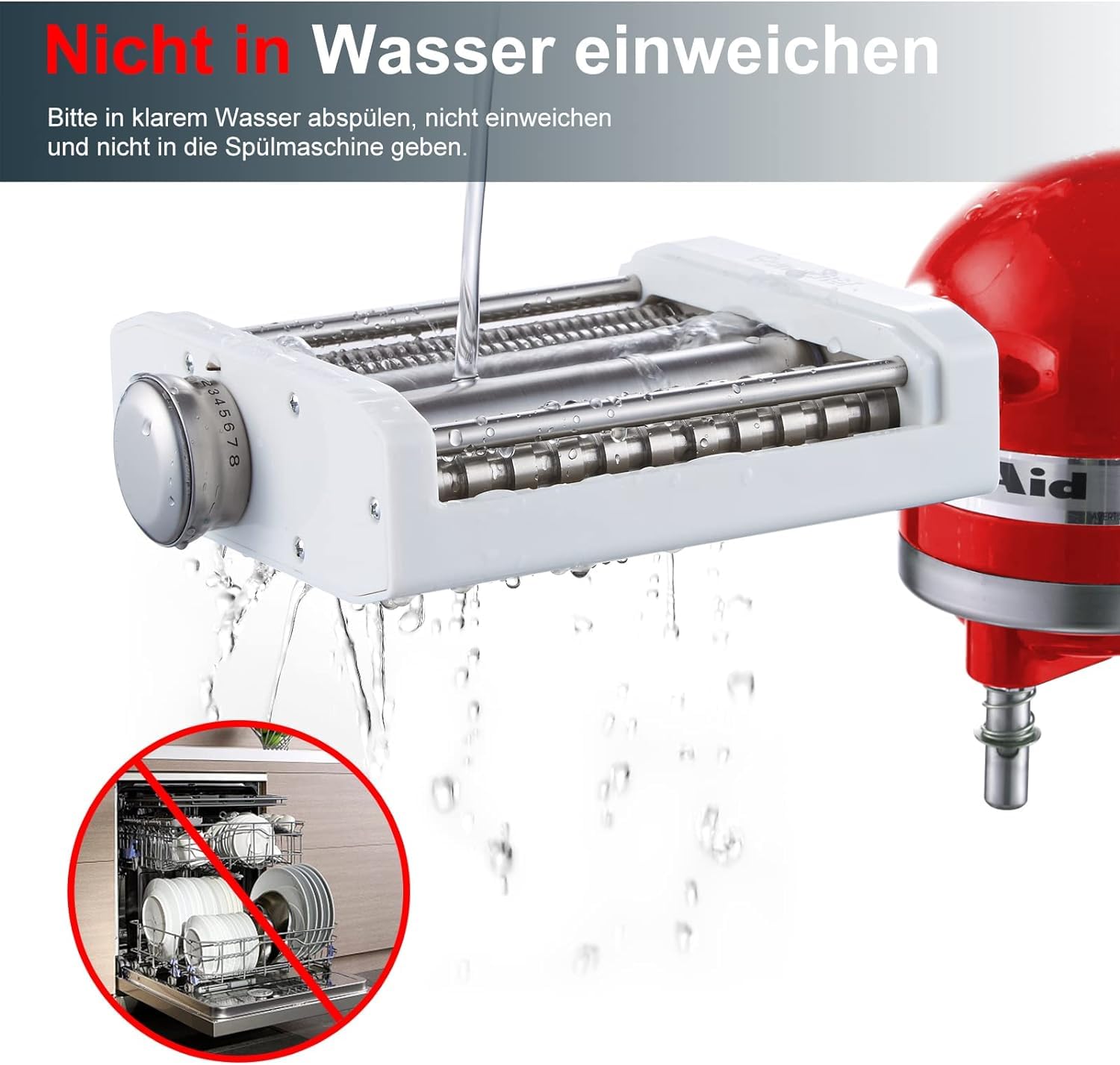 ["KitchenAid accessories: The pasta attachment for KitchenAid makes noodle preparation a breeze! Compared to the old hand-crank roller, this noodle attachment for KitchenAid fits the KA mixer perfectly and saves you time and effort. It is easy to set up and use. (NOTE: Machine not included)","Improved 3-in-1 design: Original pasta attachment set for KitchenAid is not just a kitchen tool, but a lifestyle upgrade! The pasta maker includes the noodle roller that rolls out noodle sheets, while the spaghetti cutter and fettuccine cutter cut the noodles. Much more convenient compared to other products where you have to constantly change the different rollers.","8 different thicknesses: The accessory set for KitchenAid rolls noodle sheets in 8 different thicknesses (0.4mm-2mm). Simply adjust the pasta machine Kitchen Aid roller knob from 1 to 8 to change the calibration of the roller thickness, allowing you to get any thickness suitable for various noodle recipes.","Premium material & easy to clean: The noodle roller and cutters of this pasta attachment set for KitchenAid are made of stainless steel, which is durable and easy to clean. Just remove the top cover, let the residue dry out, and use the included brush to remove any crumbs. Do not clean in the dishwasher or soak in water.","Useful surprise gift: The Kitchen Aid artisan accessory includes a noodle drying rack for drying spaghetti. The drying rack easily folds up and can be stored in a small box. As a reliable brand, we stand by our promise of 24-hour customer service and a 1-year warranty."]