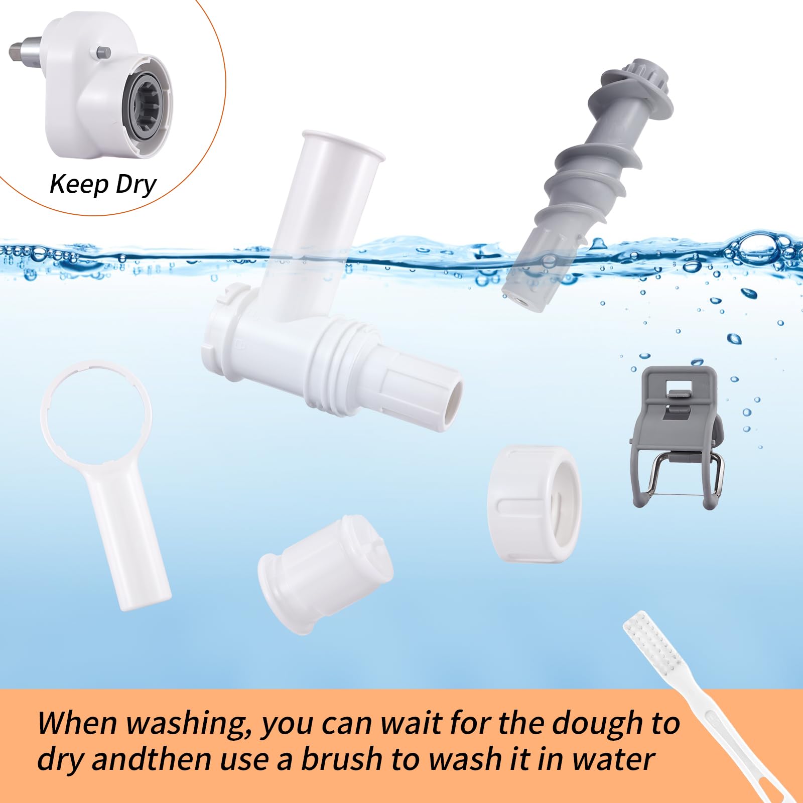 ["Fits KitchenAid Stand Mixer: This pasta attachment fits easily over your KitchenAid stand mixer, so you don't have to worry about finding extra space for another device, bringing convenience and ease to making homemade pasta and helping you create authentic fresh pasta quickly and easily at home.","Multifunctional: The 6-in-1 pasta press offers six different pasta shapes, including spaghetti, bucatini, trii-shaped pasta, rigatoni, small macaroni, and large macaroni outlets. You can easily create the desired pasta shape and styles with ease.","High Quality: The pasta press attachment is made of high-quality food grade materials and features high-precision stainless steel gears inside for smooth rotation and durability. It is a reliable addition to your kitchen, making the process of making delicious pasta even more enjoyable.","Easy to Clean: The pasta press attachments are removable and there is also a cleaning brush to remove debris from the machine. The components are all dishwasher safe and it is recommended to rinse thoroughly and dry afterwards. Note Keep the power center dry.","Excellent Gift Idea: It is a great gift for those who own a KitchenAid stand mixer. This is an ideal gift for parents, friends, wives, husbands, Mother's Day, Father's Day, Thanksgiving, Christmas, and New Year. Great choice for kitchen gifts."]
