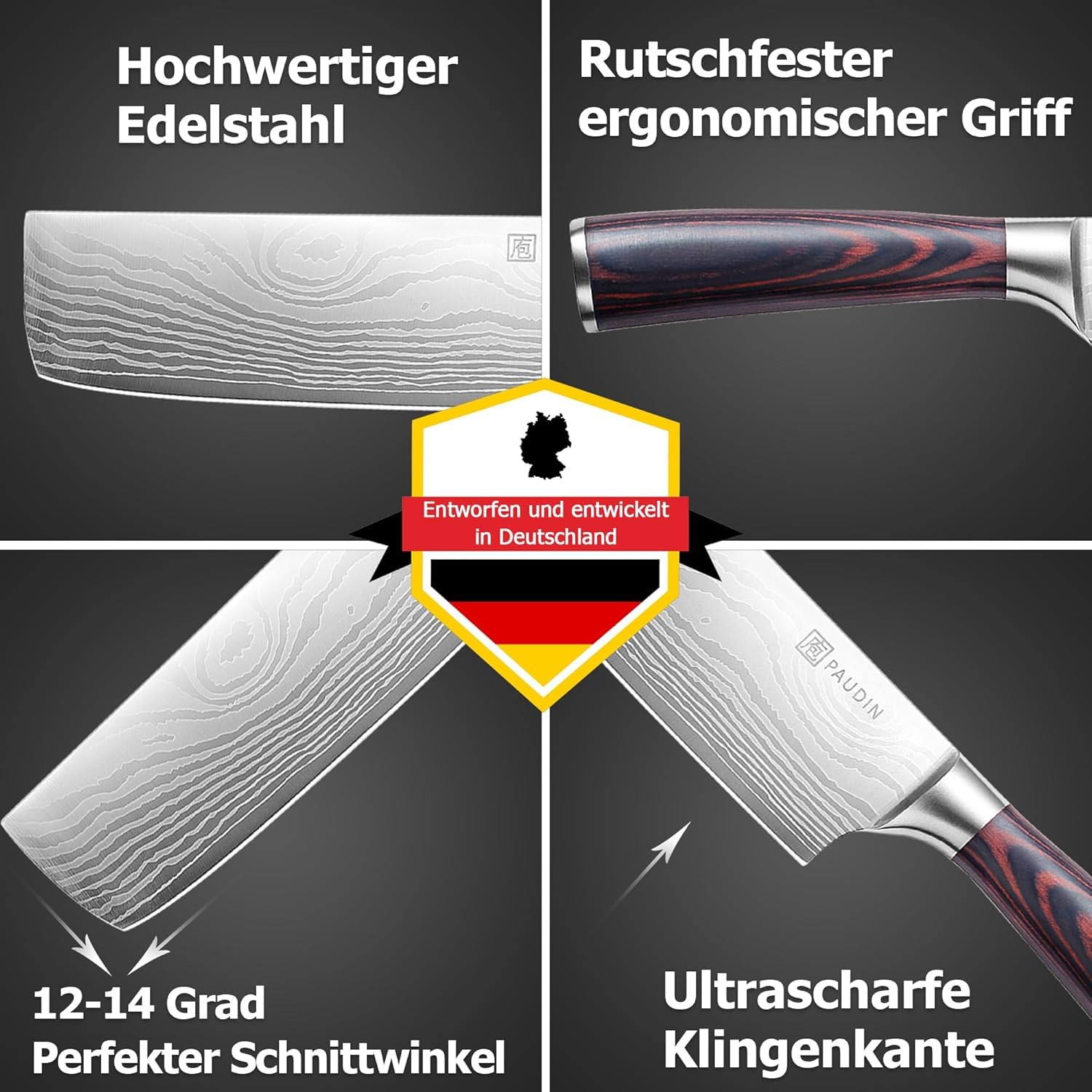 PAUDIN Japanese knife, blade length 17 cm Nariki knife chopper kitchen knife made of high-quality stainless steel, Asian multipurpose kitchen knife for home and kitchen with ergonomic handle.