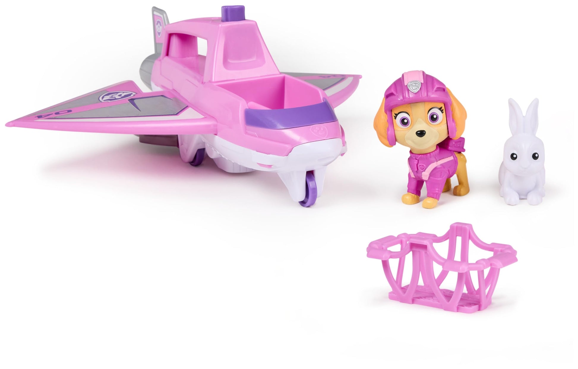 ["PAW Patrol Air Rescue Vehicle Set: Rescue plane with retractable claw, rescue basket, and approximately 6 cm tall Skye figure. Also included: a bunny figure that can be rescued with the basket", "Skye wears her pink Air Rescue aviator jacket and helmet, looking just as cool as in the series. Perfectly equipped for air adventures and a must-have for all fans", "The plane features exciting features to recreate the PAW Patrol Air Rescue adventures at home. Skye can be attached to the plane and is ready for any action. The claw with the rescue basket can be extended via a button", "For even more fun and adventure from PAW Patrol Air Rescue, additional vehicles and figures from this series are available separately: alongside Chase and Marshall, Skye forms the ultimate flying rescue team", "Includes: 1 vehicle, 1 rescue basket, 1 Skye figure, 1 bunny figure", "Spin Master's PAW Patrol toys are suitable for children aged 3 and up, and make a great gift for all PAW Patrol fans who enjoy playing with toy cars, figures, and playsets"]