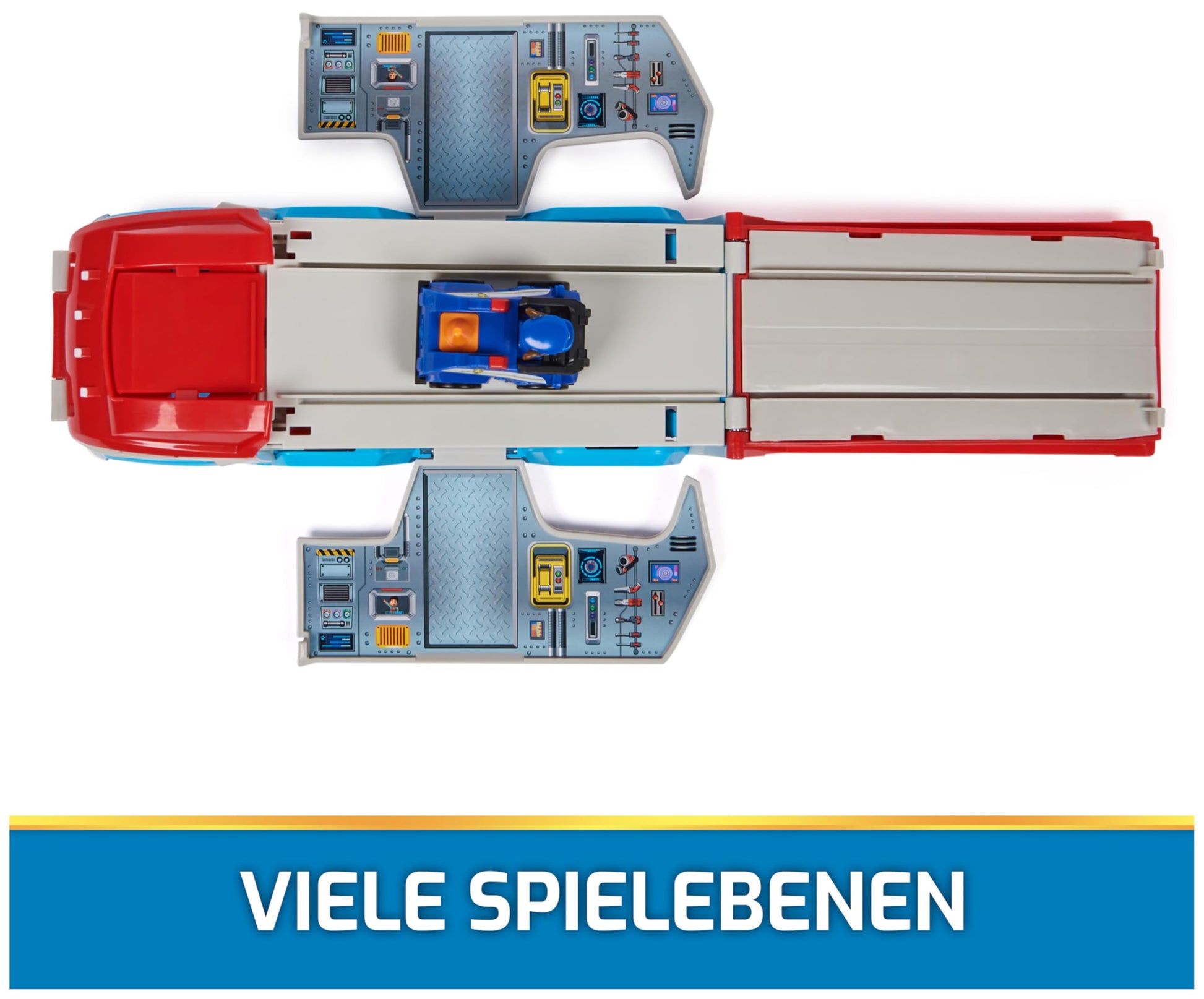 "Exciting transformation: The approx. 25cm long bus offers an exciting metamorphosis - when you place Chase's 6cm long Racer (included) on the red driver's cab, a launch ramp folds out and the side panels of the Patroller reveal its interior. Now Chase can race into adventure."