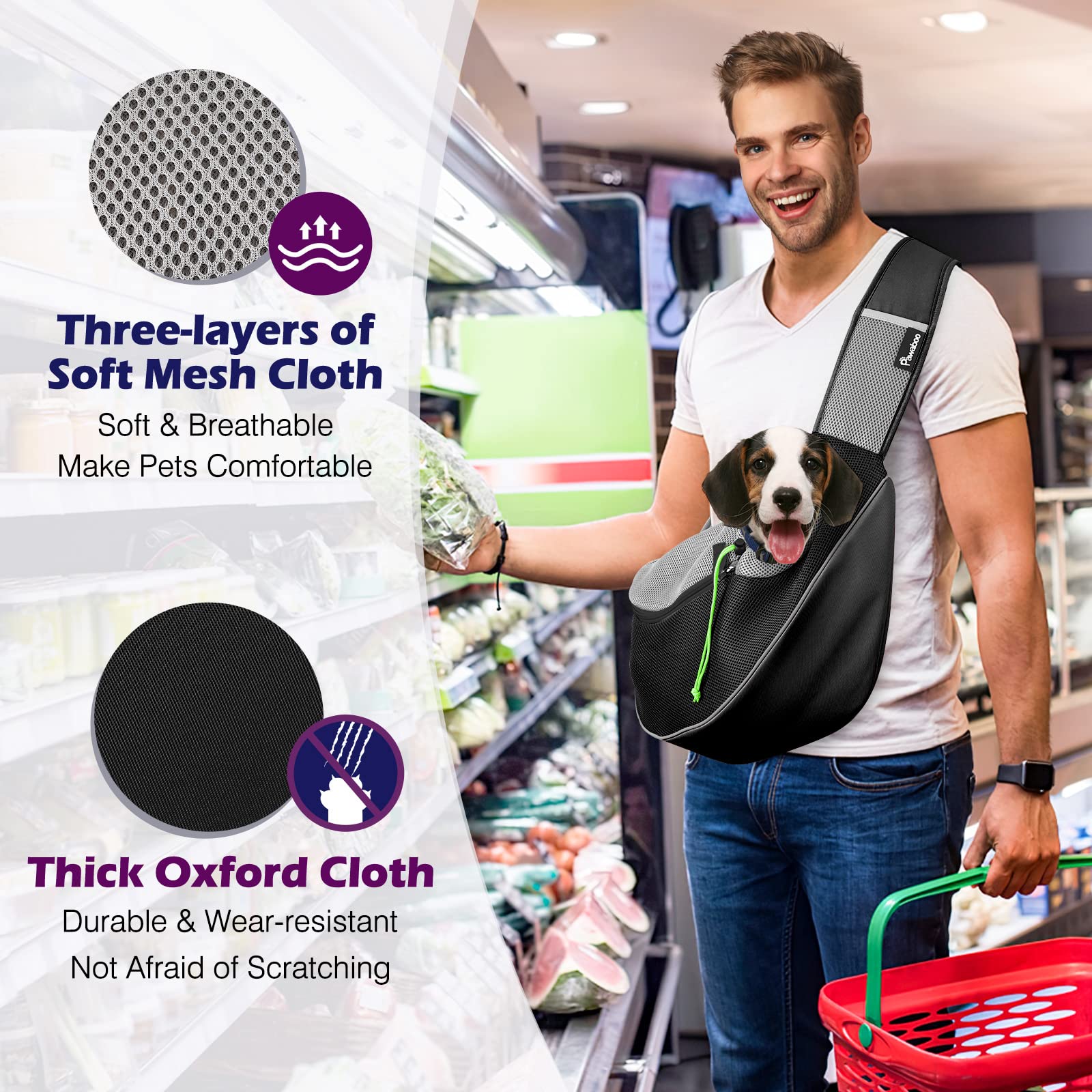 Pawaboo Dog Carrier, Adjustable Pet Carrier Bag, Pet Shoulder Bag for Dogs, Pet Carrier for Pets, Dog Carriers Sling for Outdoor Walk Travel - Large, Black
