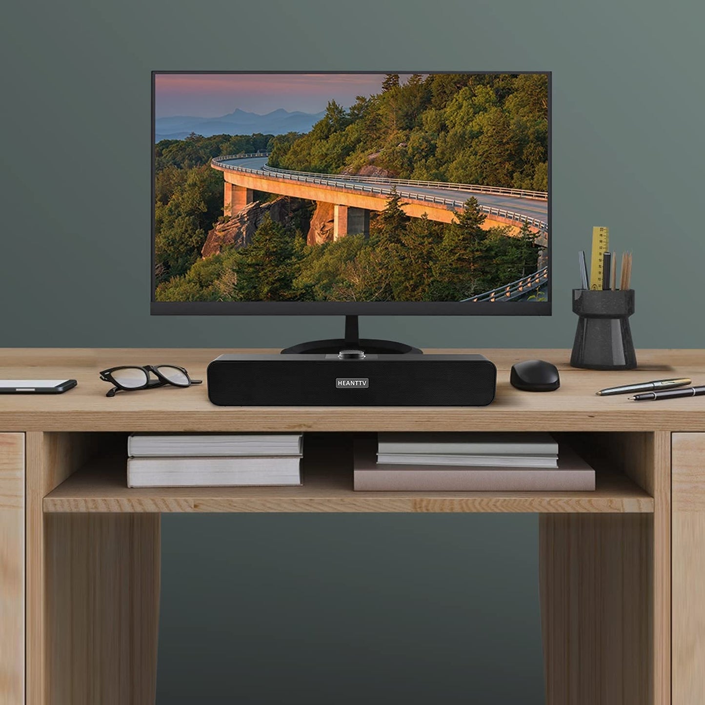 ["♬ 【2.0-Stereo-Surround-Sound-Qualität】Our 2.0 stereo USB speakers are uniquely designed for powerful, rich stereo sound with their built-in cone. This USB computer speaker features continuously adjustable volume, soft bass, and undistorted highs.","♬ 【External Dust Protection】Audio Bar is specially designed with a dustproof mesh housing, so you never have to worry about dust getting into the speaker and affecting the sound quality, allowing you to always enjoy a durable and high-quality computer speaker.","♬ 【Plug and play】The computer speakers are powered via USB. It can be directly connected to the 5V charger or the USB power of the PC, then turn the top knob to adjust the volume.","♬ 【Compatibility】Supports most devices with a 3.5mm audio jack. Compatible with PC, computer, TV, tablet, microphone, laptop, desktop, smartphone, projector, MP3, MP4, CD player.","♬ 【Support】When you receive our computer speakers, you will also receive our friendly and hassle-free 18-month customer service. If you have any questions, please email us and we will respond within 24 hours."]