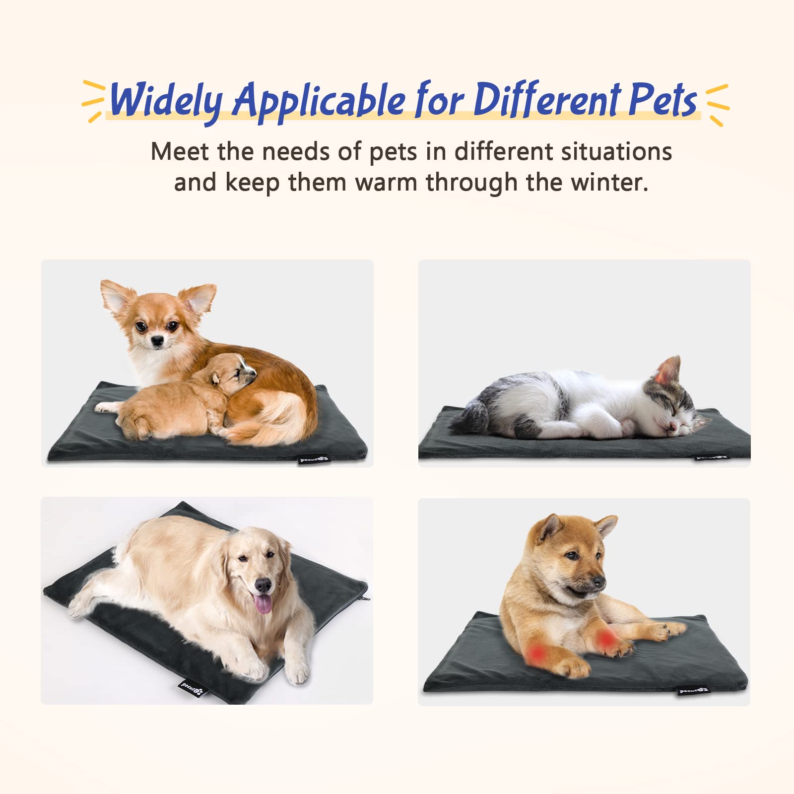Pecute Pet Heating Pad Dog Bed Large Dogs Cats, Warming Mat Dog Cushion Washable with 5 Temperature Levels, Safe Waterproof Heated Blanket Dog Mat, for Newborns and Older Animals L 65*50cm