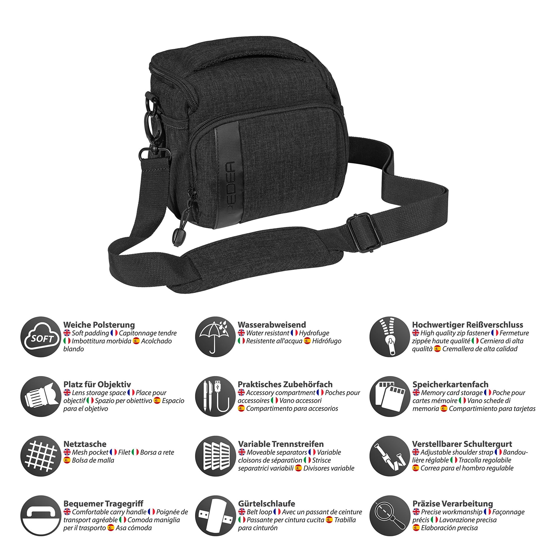PEDEA DSLR camera bag "Fashion" with screen protector for Canon EOS 5D 5D Mark II 400D 2000D / Nikon D60 D80 D90 D3100 D3200 D3300 D3400 D5300 D7100 / Pentax K 30 K 50 K 500, size L in black.
