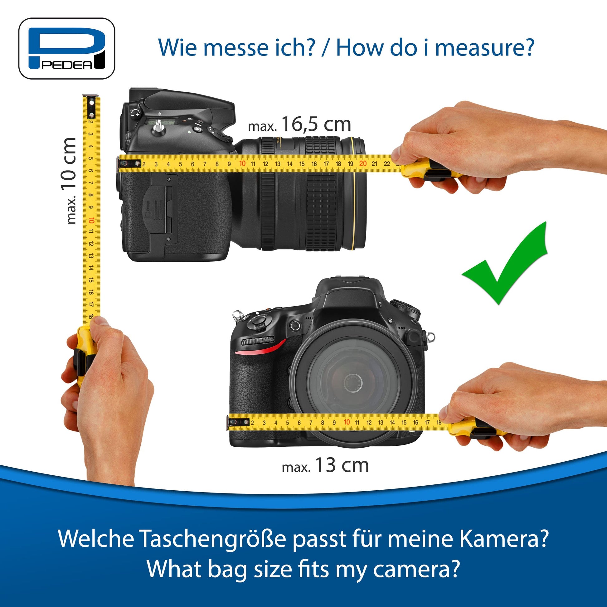 PEDEA DSLR camera bag "Guard" with screen protector for Canon EOS 5DS R M6 M100 100D G1X Mark III SX740 / Nikon Z6 D850 / Panasonic Lumix DC GH5 GX800 / Sony Alpha 6000 6500, Size L black.