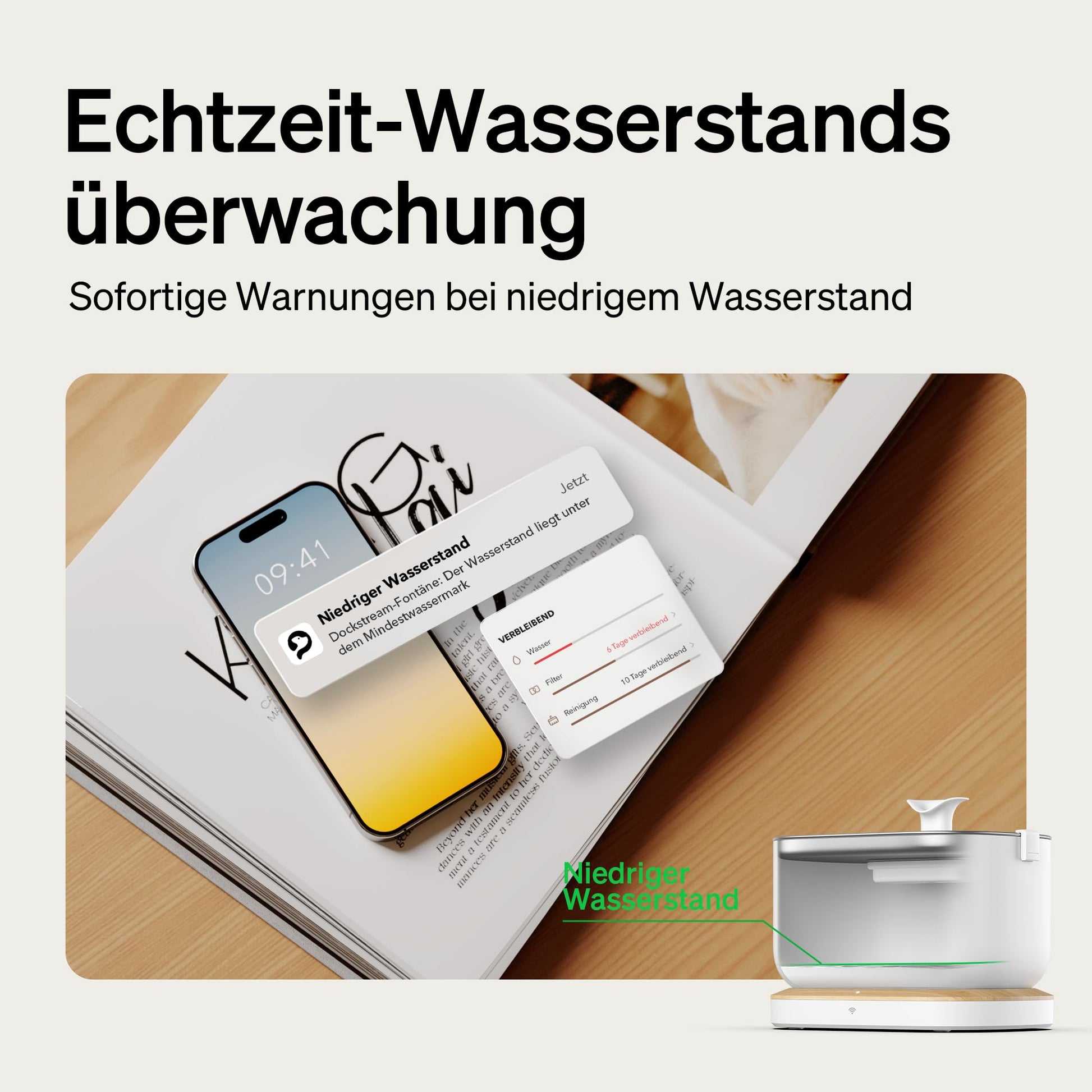 ["Simple Cat Care: Simply set a drinking goal in the app, and the PETLIBRO Dockstream app-monitored cat fountain tracks your cat's drinking amount, frequency, and time, allowing you to better understand your cat's health.","PawSense Health Monitoring System: The PETLIBRO app utilizes this system to comprehensively record fluid intake data and provide you with access to clear and easily readable reports to ensure your cat is healthy. (The cat fountain supports only 2.4GHz Wi-Fi networks, 5GHz networks are not supported.)","Clean Water in Every Mode: Choose between continuous flow mode or intermittent mode based on your cat's preferences. The multi-layer filtration system removes heavy metals, dirt, and other harmful substances, ensuring fresh, clean water. It is recommended to change the filters every two weeks and clean the pump and cat fountain. (Please search for “petlibro filter\" to purchase official filters.)","Easy to Clean and Install: The cat fountain features a removable water tank for easy refilling. The wireless water pump is easier to remove than a wired one, and cleaning the pump and tank does not require worrying about tangled cords. (The cat fountain is wall-powered. Only the water pump is cordless.)","Smart App Reminders: Thanks to real-time water level synchronization and alerts, you no longer need to worry about dehydration in cats. Never forget to change the filters and clean the pet fountain with in-app reminders."])]