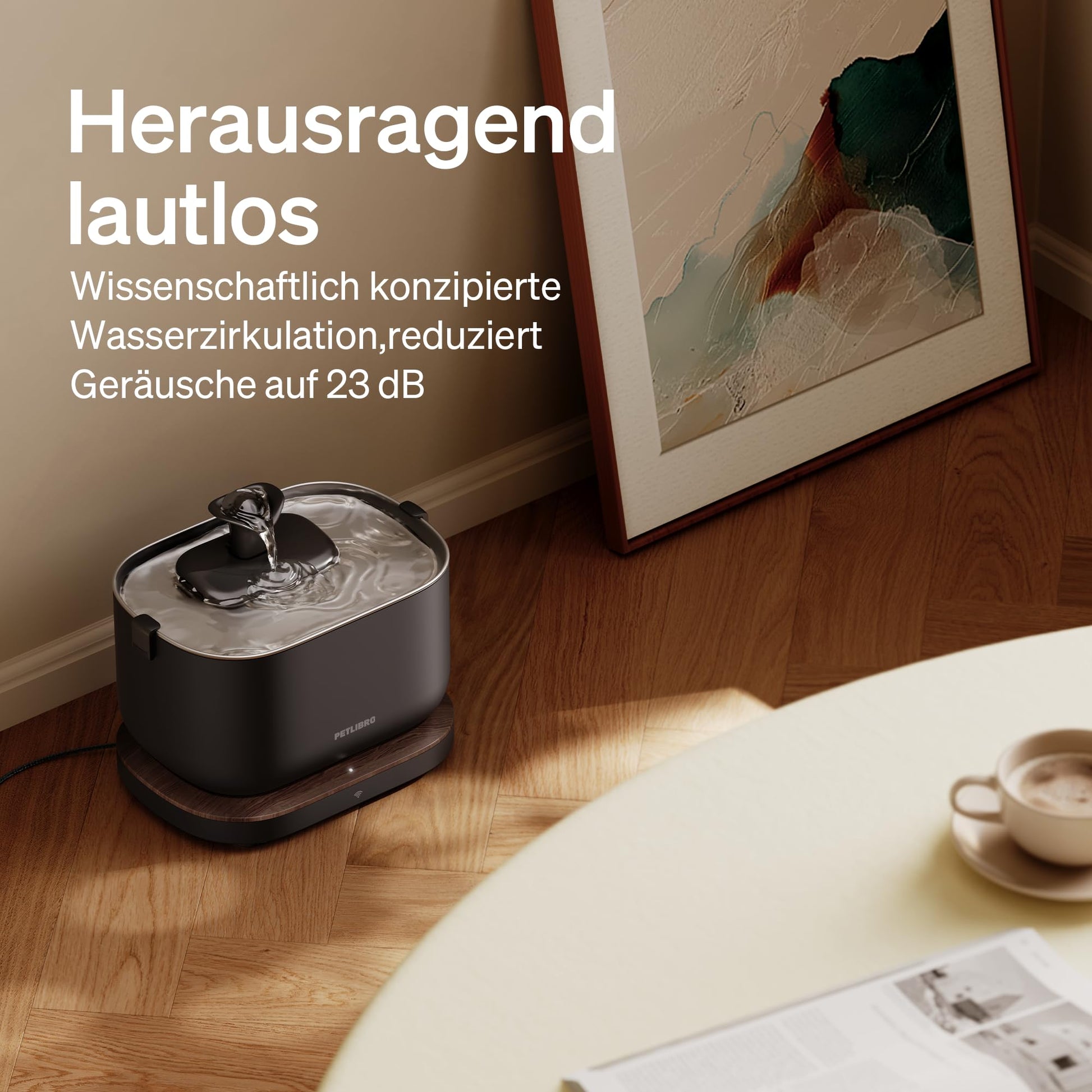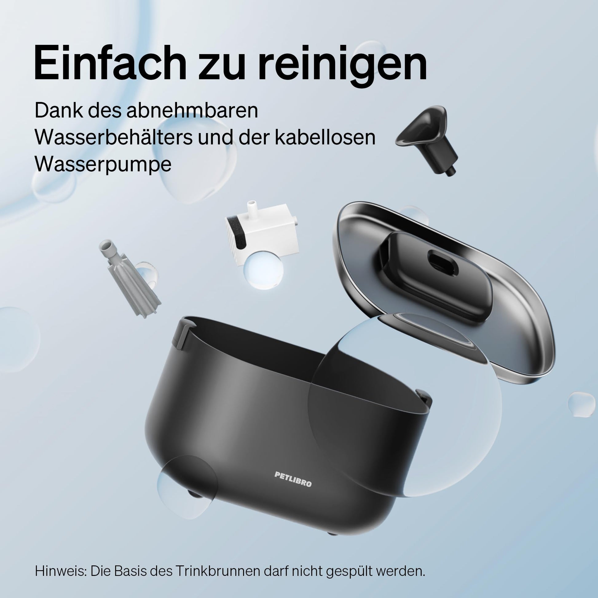 ["Simple Cat Care: Simply set a drinking goal in the app, and the PETLIBRO Dockstream app-monitored cat drinking fountain tracks your cat's drinking amount, frequency, and time, so you can better understand your cat's health","PawSense Health Monitoring System: The PETLIBRO app utilizes this system to comprehensively record fluid intake data and provide you with access to clear and easy-to-read reports to ensure your cat's health. (The cat fountain only supports 2.4GHz Wi-Fi networks, 5GHz networks are not supported)","Pure Water in Every Mode: Choose between continuous flow mode or intermittent mode based on your cat's preferences. The multi-layer filter system removes heavy metals, dirt, and other harmful substances, ensuring fresh, clean water. It is recommended to change the filters every two weeks and clean the pump and cat drinking fountain. (Please search for "petlibro filter" to purchase official filters)","Easy to Clean and Install: The cat fountain features a removable water tank for easy refilling. The cordless water pump is easier to remove than a wired one, and you won't have to worry about tangled cords when cleaning the pump and tank. (The cat drinking fountain is wall-powered. Only the water pump is cordless)","Smart App Reminders: Thanks to real-time water level synchronization and alerts, you no longer have to worry about dehydration in cats. Never forget to change the filters and clean the pet fountain with in-app reminders","Perfect for Your Cat: The PETLIBRO cat drinking fountain features a food-grade 304 stainless steel water tray and the fountain is made from BPA-free materials, preventing cat acne. It generates a barely audible noise level of 23 dB, so you and your pet can sleep peacefully at night. Plus, the pump automatically stops when the water level is low to ensure safety, and a 130ml emergency storage keeps your cat hydrated during a short power outage","Placement Guidelines: Secure the cable in its slot. Place the device on a stable, flat surface where external vibrations are minimal. Leave a 20cm space around the device. Recommended for cats only. Please calibrate the base and water tank separately before using the cat fountain."]