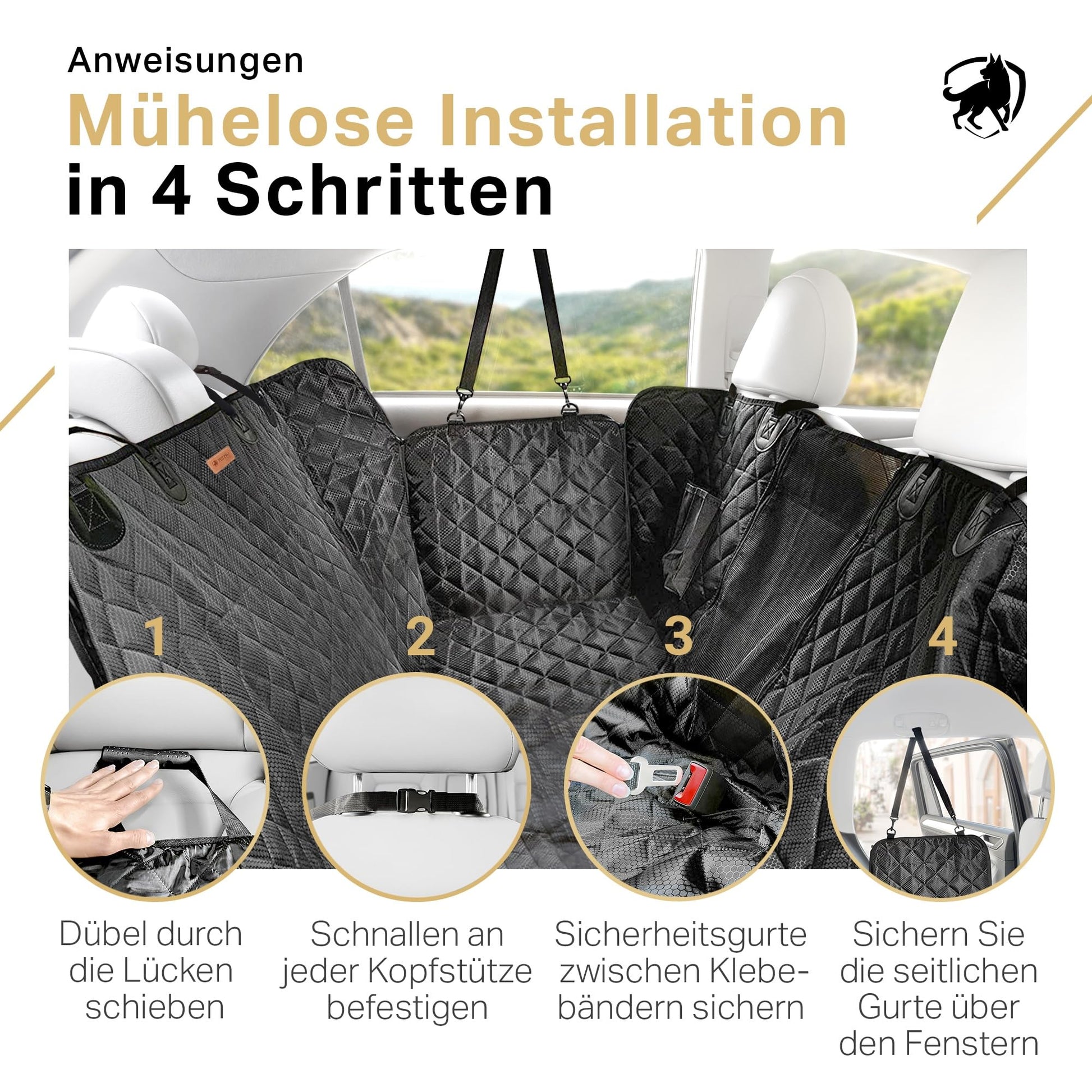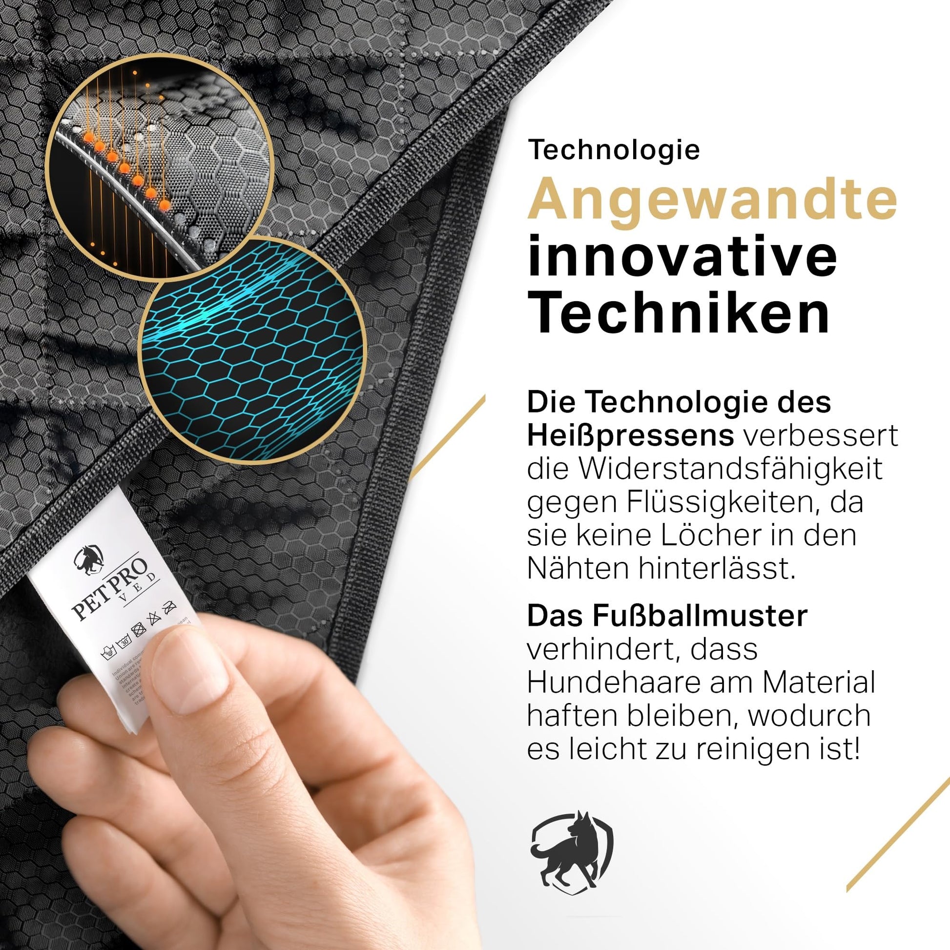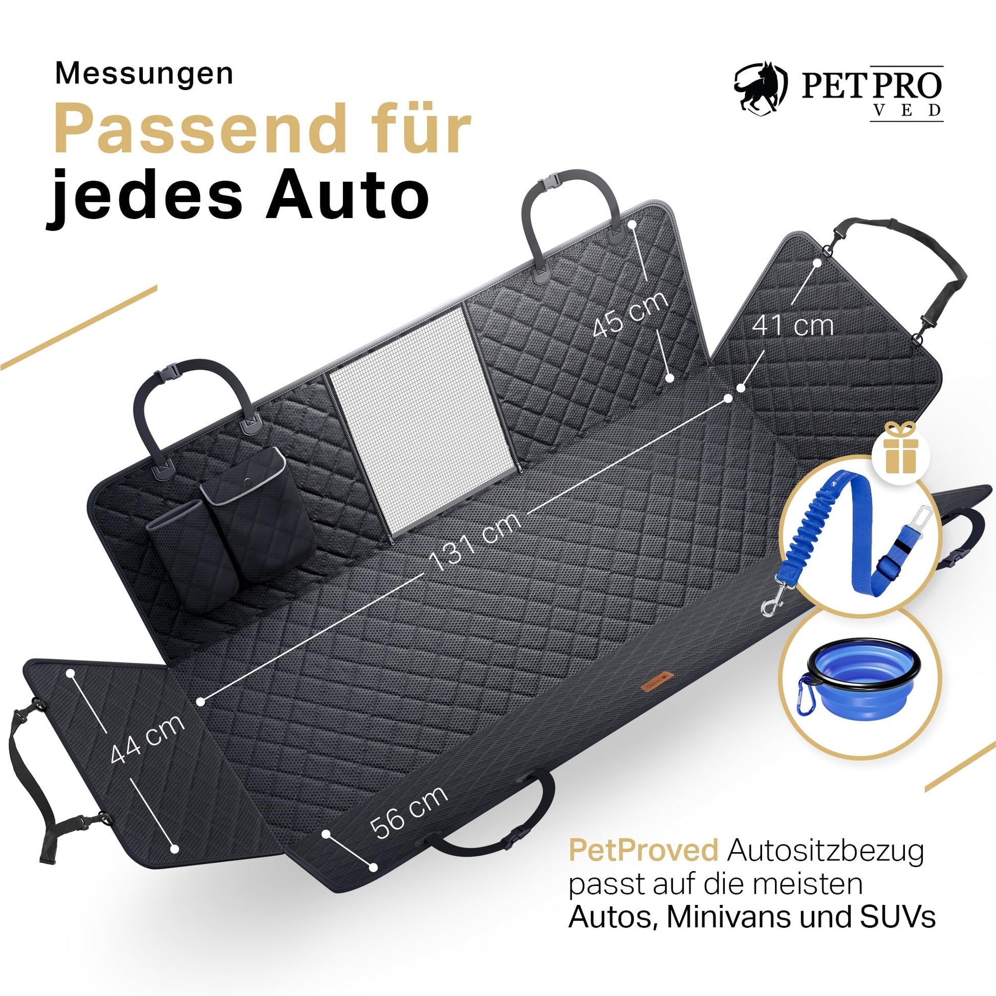 ["WATERPROOF CAR DOG SEAT COVER BACK SEAT: PetProved has developed a car seat cover that fits most cars and SUVs. It can also be converted in 3 ways: hammock for full protection of the back seat and the dog, bench seat when you have passengers, and you can even use it in the trunk! Your needs meet our capabilities!","EASY TO CARE FOR: The top layer of the car seat cover is coated with a luxurious football pattern. It is easy to clean because dog hair and bristles do not stick to the fabric, they can be vacuumed or brushed off, and dirty spots can be cleaned with a damp cloth. As simple as it sounds!","HEAT-PRESSING TECHNOLOGY BACK SEAT PROTECTOR DOG: an innovative method for connecting PetProved car seat covers that leaves no seam holes like traditional technologies. The cover without seam holes has better water resistance as there are no gaps for liquids to escape. An ideal solution for complete protection of the vehicle interior!","EASY ASSEMBLY: Each layer has been selected to serve its best purpose, dog blanket car backseat divisible. The top Oxford fabric prevents liquid leakage, the three middle fabrics are lightweight and breathable, and the non-slip rubber bottom keeps the cover in place. The best quality you can get on the market!","SECURE AND COZY PLACE CAR DOG BLANKET BACK SEAT: With four protective sides and a comfortable design, your furry friend has a cozy spot for travels. Your comfortable travels begin with PetProved back seat protector dog!"]