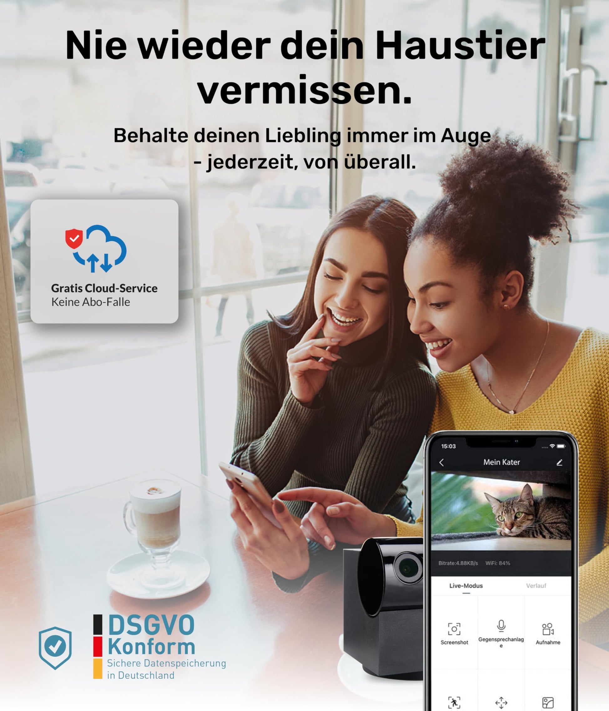 "MEIST VERKAUFTE HAUSTIERKAMERA DEUTSCHLANDS: With the 2-way communication you can interact with your pet and even call him to the camera. Let your family & friends participate by easily sharing beautiful moments via photo or video - from the free app - Thanks to the equally clear night vision, you can see well in the dark as well.",