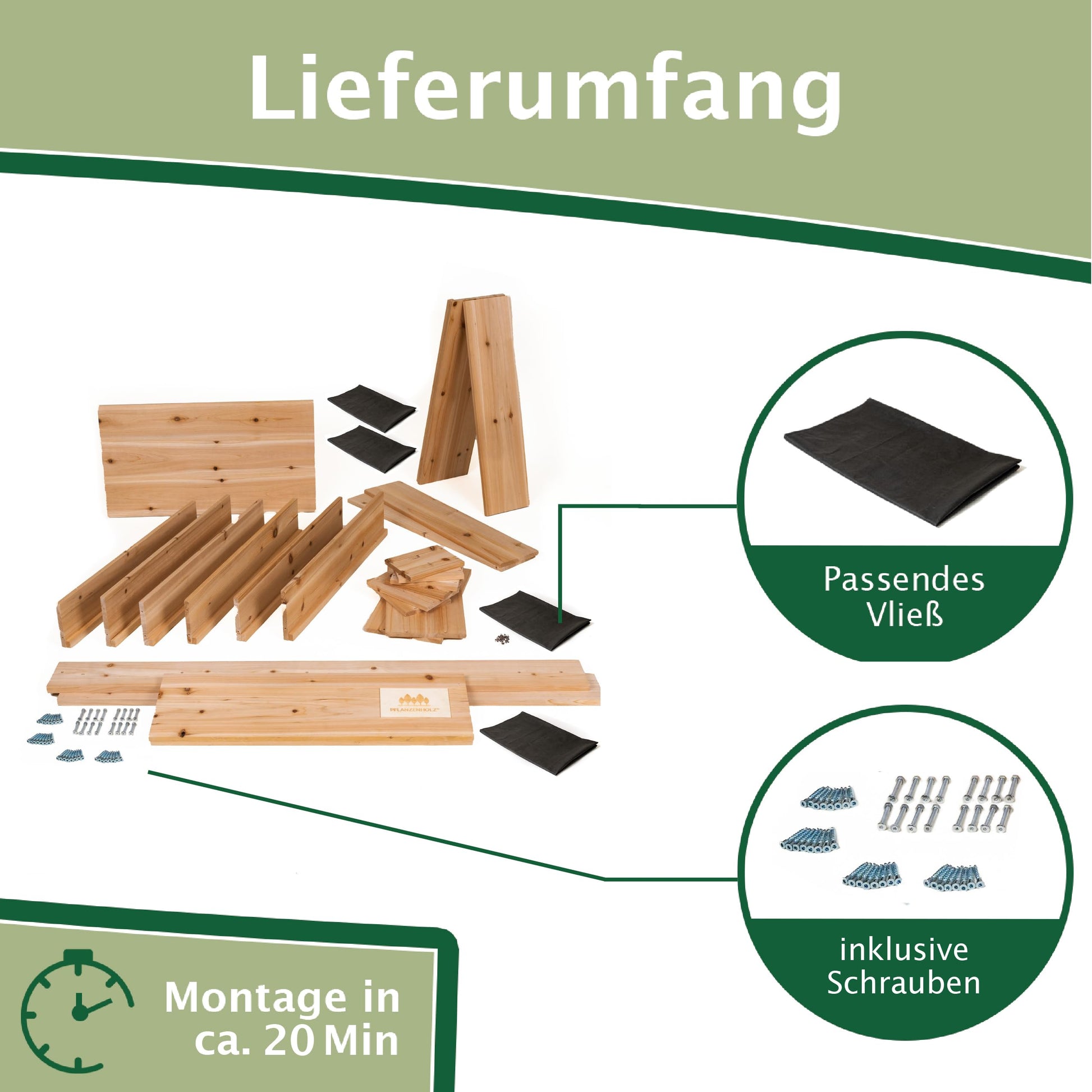 PFLANZENHOLZ® Premium Cedar Plant Stand - Space-saving wooden raised bed for balcony and garden - Plant shelf including fleece and copper design pegs - Dimensions 135x85x45 cm (Type: PT001)