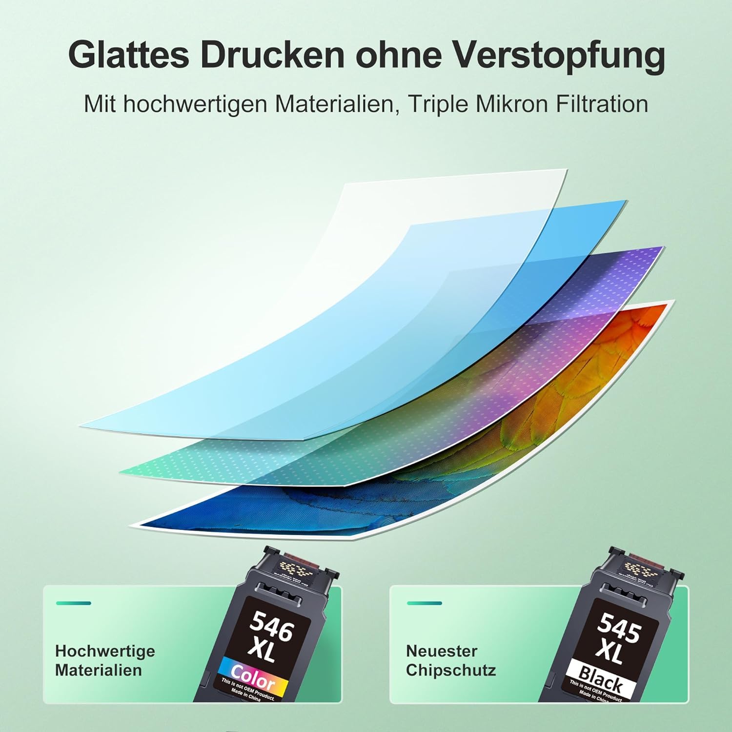 PG-545XL CL-546XL for Canon printer cartridges 545 546 XL Multipack Replacement for Pixma MX495 TR4550 TS3150 TR4551 MG3050 MG2555s MX490 TS3151 MG2550s TS3350 MG2950 MG2950S MG3051 (Black, Color, 2-Pack)