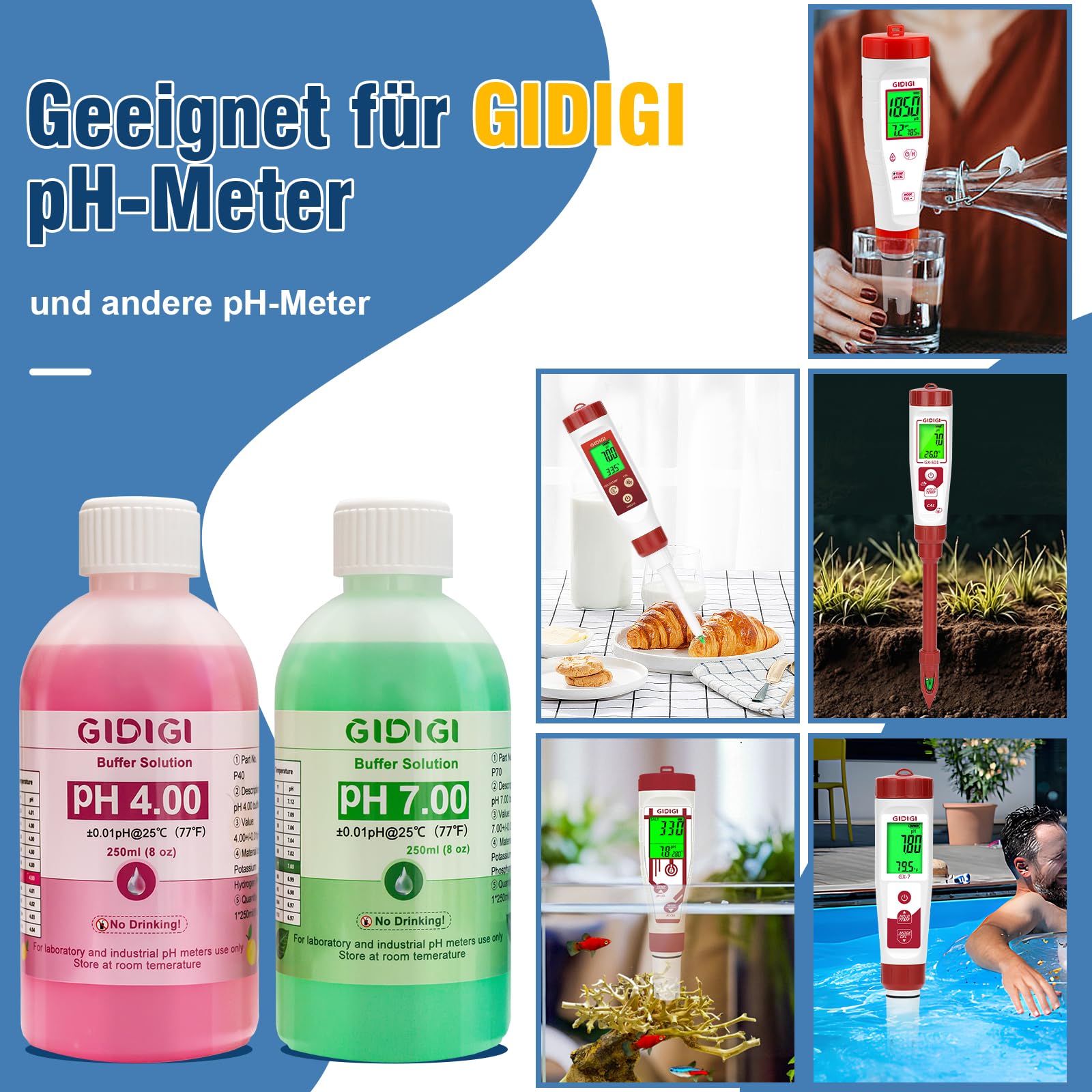 ["High precision pH buffer calibration solution set: Provides values with an accuracy of +/- 0.01 pH at 25 °C. You can use the GIDIGI pH meter for an extended period of time and receive an accurate pH buffer calibration solution.",