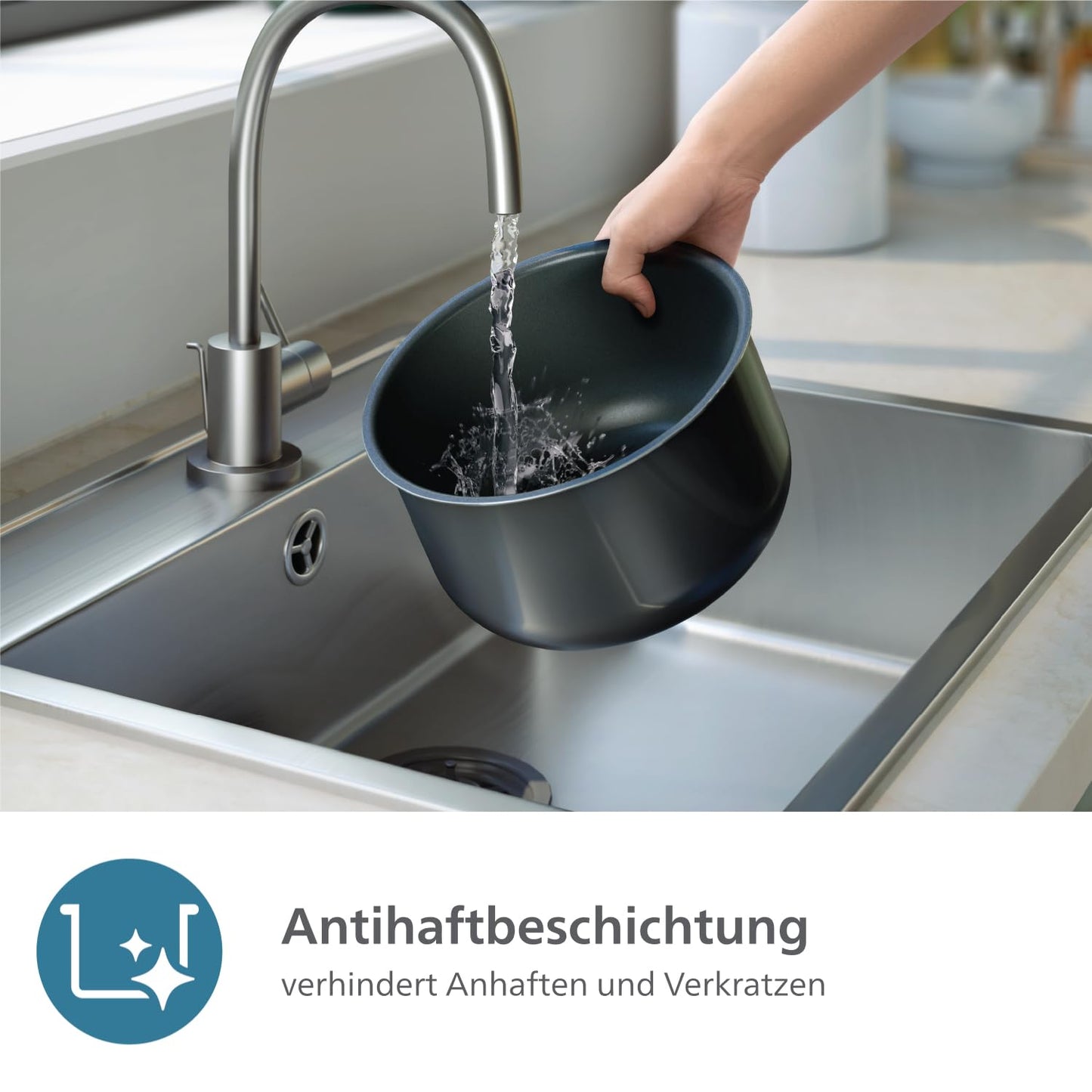 ["LARGER CAPACITY: Cook up to 0.85 l of rice - perfect for families & Meal Prep. The Philips 3000 Mini Rice Cooker ensures perfectly fluffy rice every time & provides enough capacity for your favorite dishes.",
