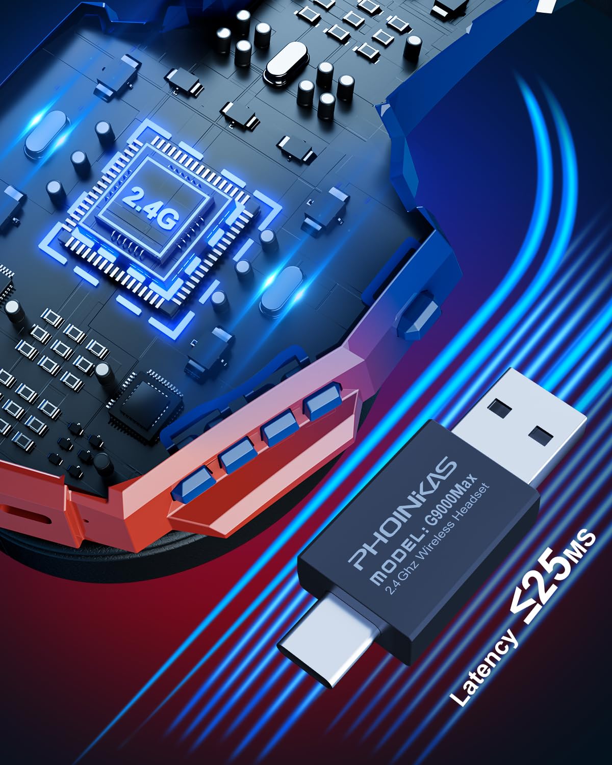 "7.1 Surround Sound & Stereo Effect: The wireless gaming headset features low latency (≤25ms) and is equipped with a 40mm driver unit and an additional 30% sound enhancement. It can accurately capture every detail in games, such as footsteps and the direction of shots, providing an immersive experience. Perfect for popular games like Fortnite and Call of Duty.",